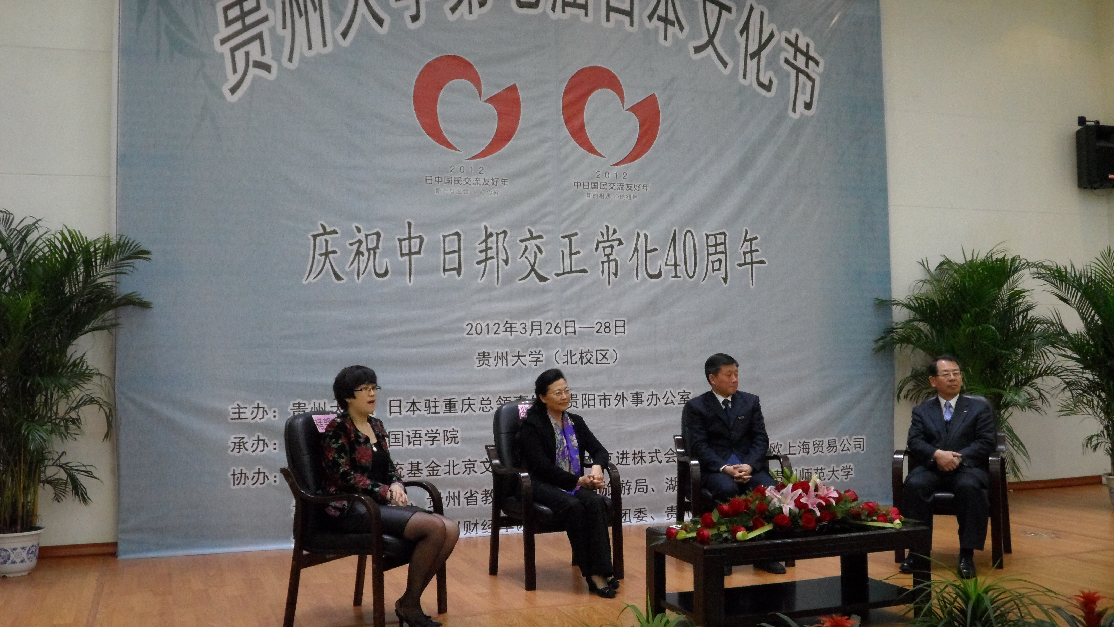 最后,贵阳市外事办副主任褚郭宏发言。她指出:“2012年是中日交流的友好年,是中日邦交正常化40周年,希望日本文化节越办越好,扩大交流,切实增强两国人民感情。预祝本届文化节取得圆满成功。”