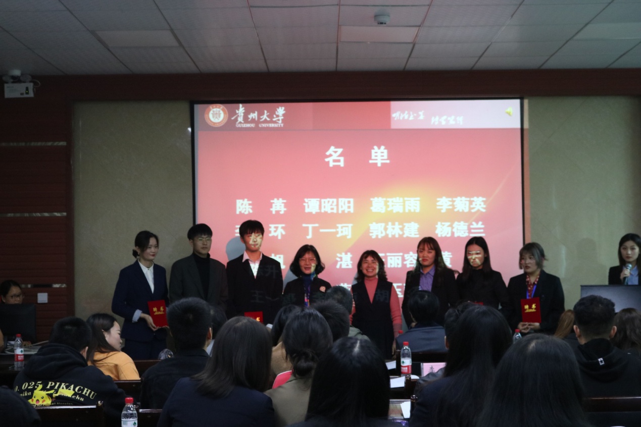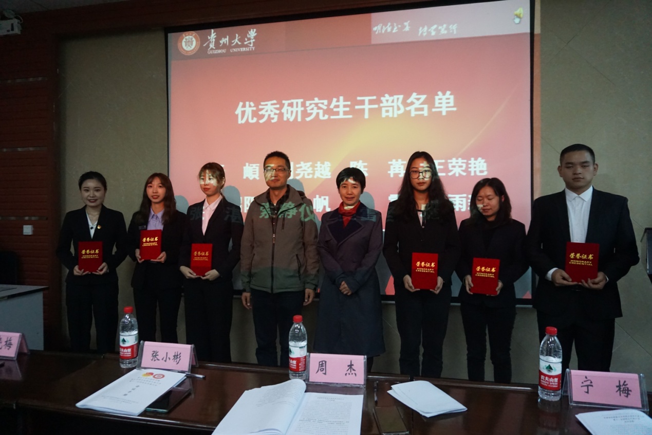 张小彬副部长和周杰院长为第四届研究生团总支、第十届研究生会优秀干部颁发荣誉证书。王晓梅副院长和宁梅副院长为第五届研究生团总支、第十一届研究生会干部颁发聘书。