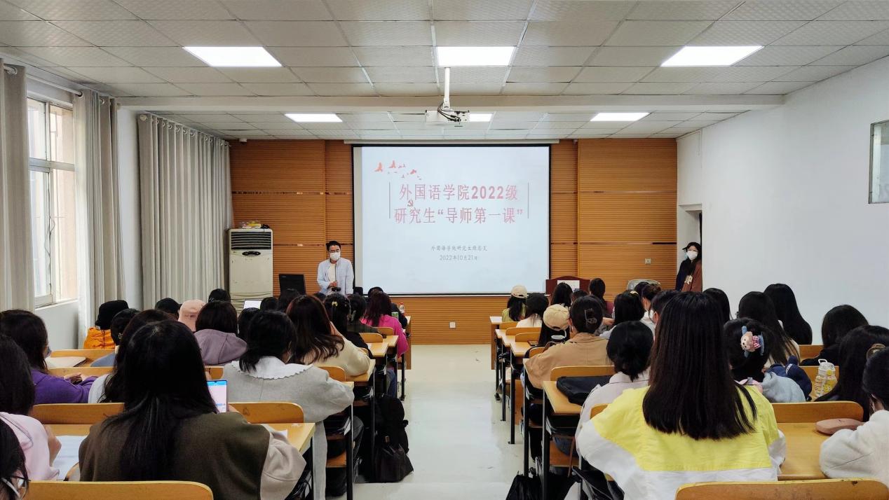 为帮助2022级研究生新生掀开学习新篇章,对研究生阶段的生活和学习有一个更深刻的认识,2022年10月21日下午17点,金沙9001cc以诚为本首页“导师第一课”分享会在外语楼226教室举行。本次分享会由金沙9001cc以诚为本首页刘岩老师和麻金星老师主讲,2022级全体研究生参加。
