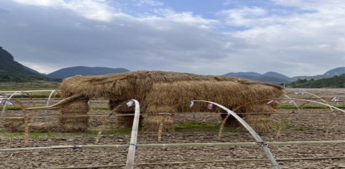 图5 稻田艺术像 | 图6 参观洪江村村史馆 |