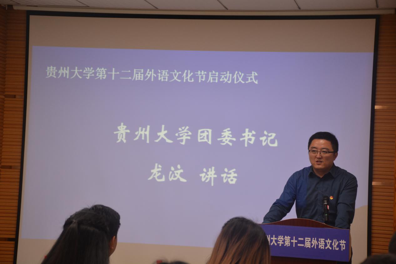 最后,校团委书记龙汶发表了讲话,他表示:“经过十一年的积累和传承,外语文化节今年成功申报为校级活动,希望同学们积极运用外语文化节这个平台,求真知,将理论和实践相结合,用于实践,做到知行合一,德才兼修,做社会主义合格的建设者和可靠的接班人。”