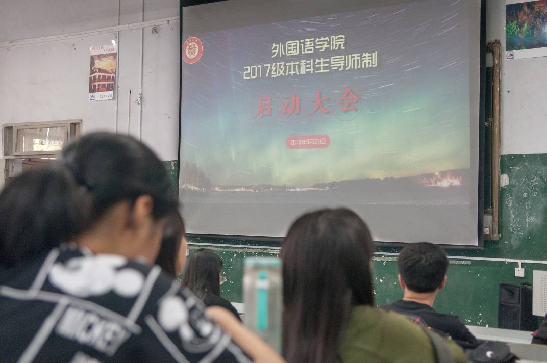 金沙9001cc以诚为本首页教学科讯 2018年9月21日下午1:30,我院二年级本科生导师制启动大会如期进行。学院宁梅副院长,英语系主任曾贤模、副主任彭启英老师,翻译系肖琦老师出席了本次大会,教学科科长李蓉老师担任主持。