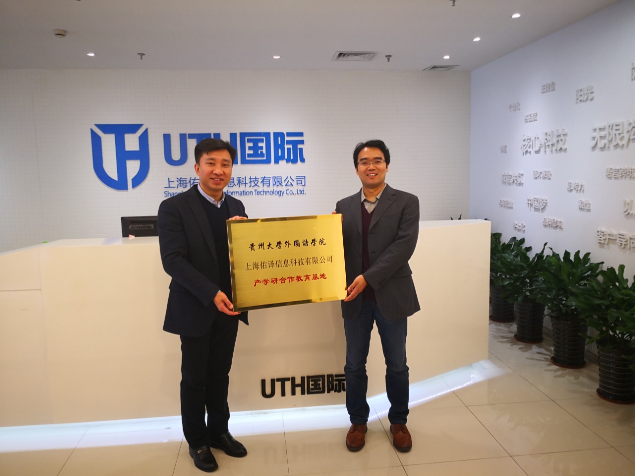 金沙9001cc以诚为本首页党政办讯 11月9日上午11时,金沙9001cc以诚为本首页与上海佑译信息科技有限工作(以下简称:UTH国际)共建“产学研合作教育基地签约挂牌仪式”在上海UTH国际总部会议室举行。金沙官网党委书记白震、上海UTH国际执行副总裁王志涛、区域销售总监李晨曦、高校部高级经理曹清清共同出席了挂牌仪式。