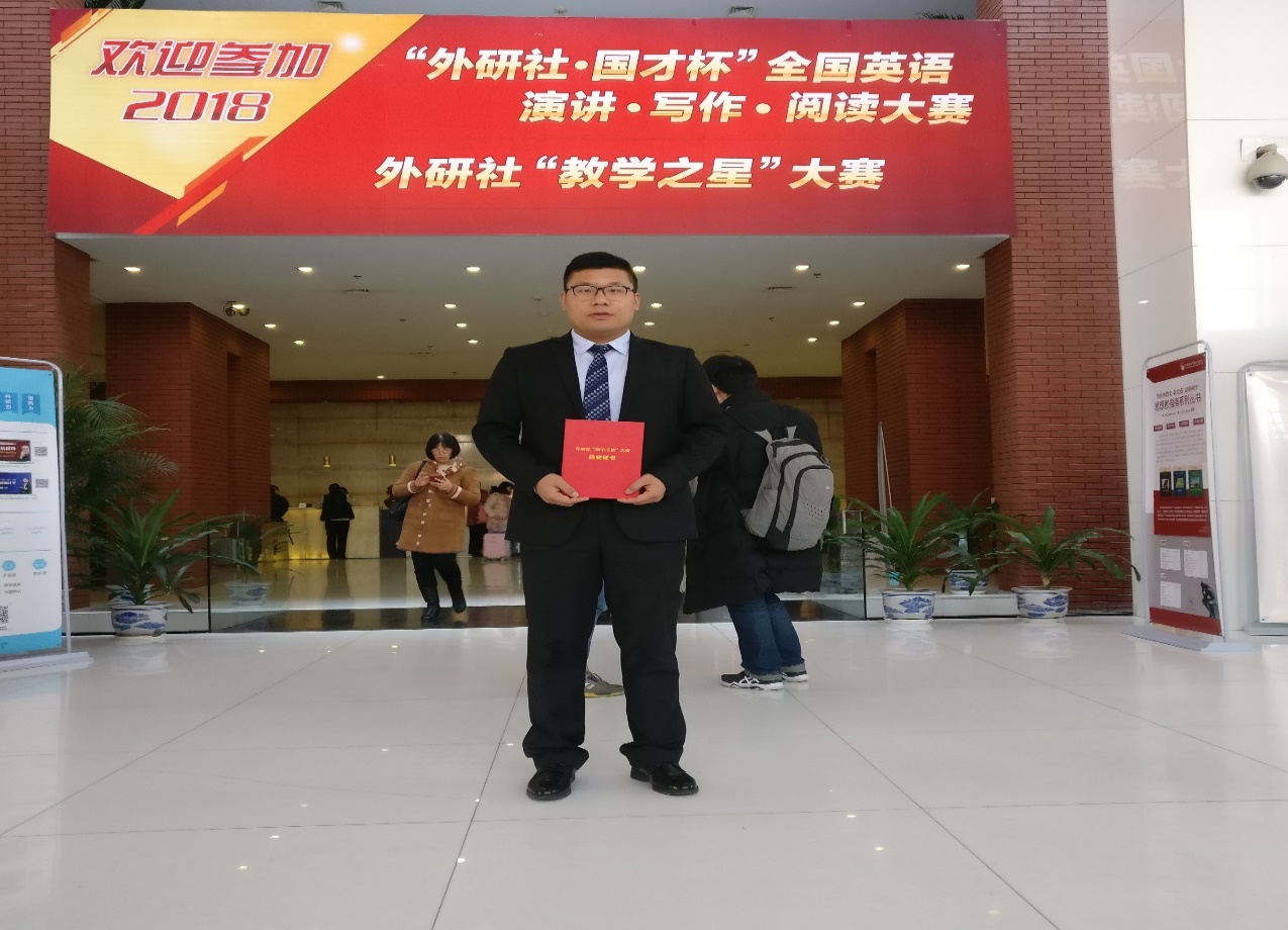 金沙9001cc以诚为本首页党政办讯 12月7日-9日,由教育部高等学校大学外语教学指导委员会、教育部高等学校英语专业教学指导分委员会、北京外国语大学中国外语教育研究中心和外语教学与研究出版社共同举办的2018年“教学之星”全国总决赛于北京举行。金沙官网阳志奇老师获得外研社“教学之星”全国总决赛一等奖。