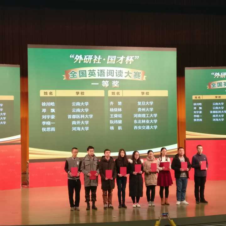在此前的2018年“外研社杯” 演讲大赛、阅读大赛及写作大赛贵州赛区决赛中,我校学子也取得了非常优异的成绩。其中,在英语演讲比赛中,金沙9001cc以诚为本首页2018级研究生杨小平和徐岳同学获特等奖、阳明学院2018级刘洋华同学获二等奖;在英语写作比赛中,管理学院2016级徐淼同学和阳明学院2018级高双赢同学获一等奖,金沙9001cc以诚为本首页2018级张亮星同学获二等奖,管理学院2016级王烨同学获得三等奖;在英语阅读比赛中,金沙9001cc以诚为本首页2016级杨依林同学获特等奖、金沙9001cc以诚为本首页2017级胡佩家和计算机科学院2016级胡尧同学获一等奖、城市规划学院徐浩添同学获二等奖。