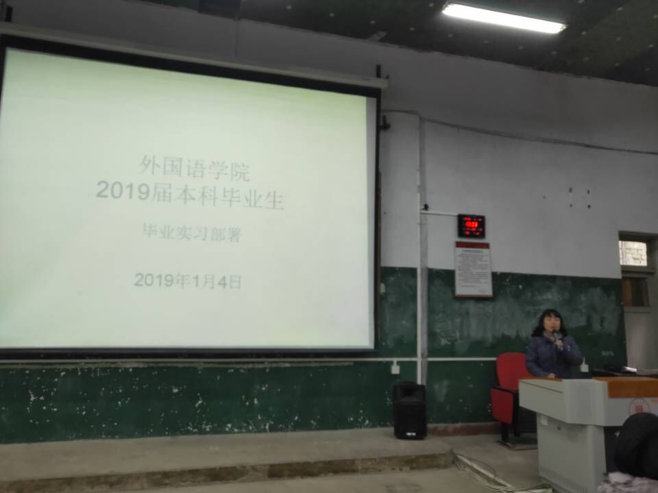 金沙9001cc以诚为本首页教学科讯 1月4日中午1:00,金沙9001cc以诚为本首页2019届本科毕业生实习动员大会在法阶三教师召开,金沙官网副院长宁梅出席大会,学院2019届本科毕业生参加了大会。
