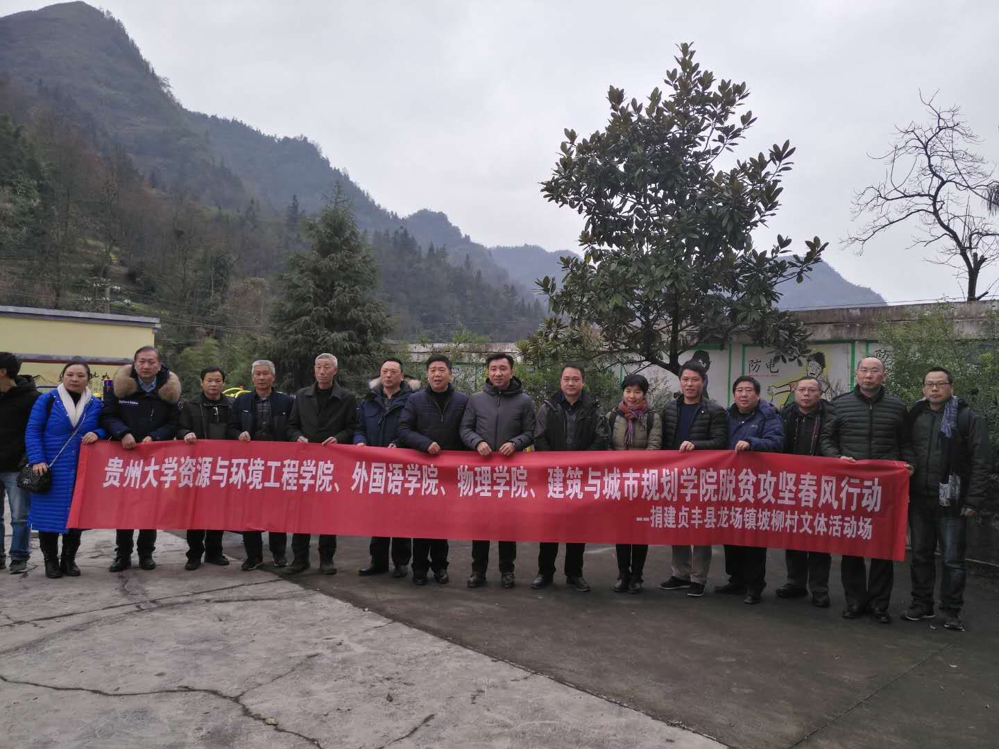 (学院党政办讯)春节临近,为进一步落实学校脱贫攻坚春风行动的部署和要求,2019年1月15日,在前期调研和准备的基础上,金沙官网赴贞丰县龙场镇坡柳村开展帮扶活动,为坡柳村捐建“村级五小工程”之一的“小文体活动场”,同时还走访慰问了该村的贫困户。