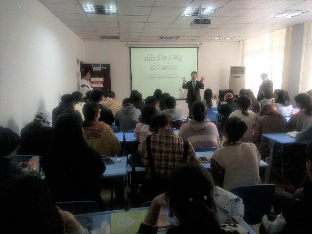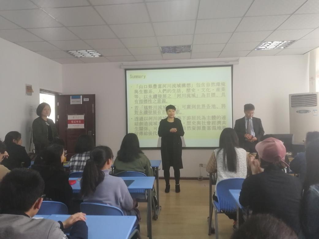 金沙9001cc以诚为本首页讯 3月27日中午13时许,由日本山口大学陈礼俊教授担任主讲的山口大学经济学研究科直选硕士说明会在金沙官网310教室成功举行。本次说明会由金沙9001cc以诚为本首页日语系主任文莹老师主持,以“山口大学大学院升学说明会——经济学研究科”为主题,日语系副主任沈媛媛老师、日语系二年级、三年级本科生以及2018级研究生到场聆听。