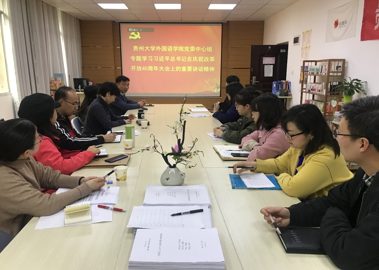 金沙9001cc以诚为本首页党政办讯 3月15日中午1时,金沙官网在外语楼223教室召开党委中心组(扩大)理论学习会议,专题学习习近平在庆祝改革开放40周年大会上的重要讲话精神。学院党委委员、组织员、纪委委员、各科室负责人中的党员干部、各系(部、教研室、硕点)负责人中的党员干部、各党支部书记参加了学习会。党委书记白震主持了学习会。