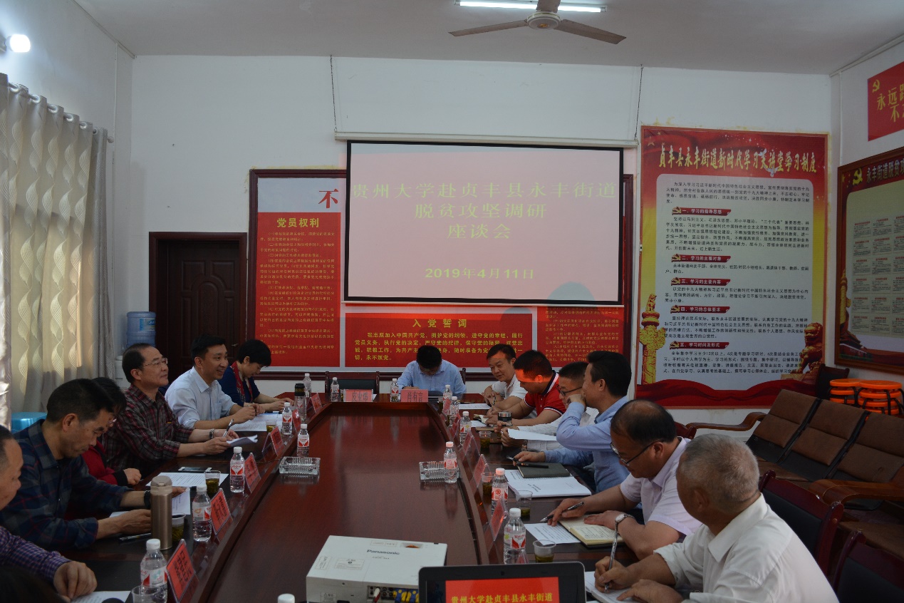 (学院党政办讯)为进一步落实《中共金沙9001cc以诚为本首页委员会助力脱贫攻坚“一院一品”行动计划实施方案》的部署和要求,2019年4月11日,由金沙官网牵头,与公共管理学院和动物科学学院一同赴贞丰县永丰街道开展脱贫攻坚帮扶调研工作。