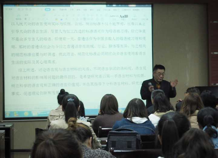 金沙9001cc以诚为本首页研究生会宣传部讯 4月15号下午,金沙9001cc以诚为本首页2019年第5期“文科讲坛”在金沙9001cc以诚为本首页201会议室成功举办。本期论坛特邀中央民族大学文学博士、应用语言学专业博士生导师王远新教授做了题为“语言观与语言材料的关系”的学术讲座。讲座由金沙9001cc以诚为本首页张炼教授主持,外院师生及人文学院部分同学参加了本次讲座。