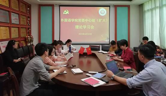 金沙9001cc以诚为本首页党政办讯 4月25日中午1时,金沙官网在外语楼207会议室召开党委中心组(扩大)理论学习会议,学院党委委员、纪委委员、科室负责人中的党员干部、系(部、教研室)负责人中的党员干部、硕士点负责人中的党员干部、各党支部支委等参加了学习会。党委书记白震主持学习会。