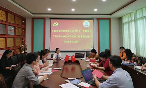 会议先后学习了习近平总书记关于宗教工作的重要论述、《宗教事务条例》、《中国共产党支部工作条例(试行)》(以下简称《条例》)。白震强调,习近平总书记在全国宗教工作会议上的讲话就要宗教问题和宗教工作提出了一系列新思想新观点新要求,大家须认真学习领会,再结合《宗教事务条例》,认真做好学校相关工作。同时,白震要求各党支部切实学习贯彻好《条例》内容,深学笃用,促进支部各方面建设取得新成就。