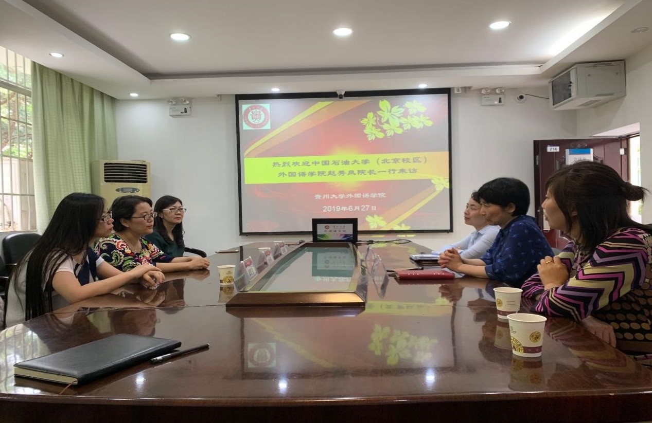 (图为中国石油大学金沙9001cc以诚为本首页领导与我校金沙9001cc以诚为本首页领导交流)