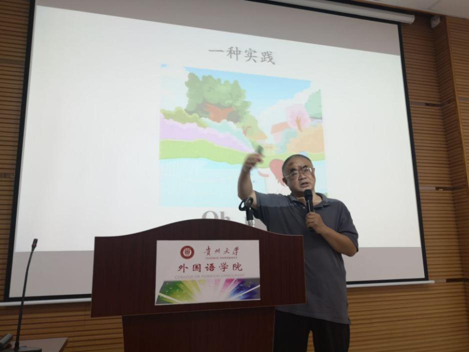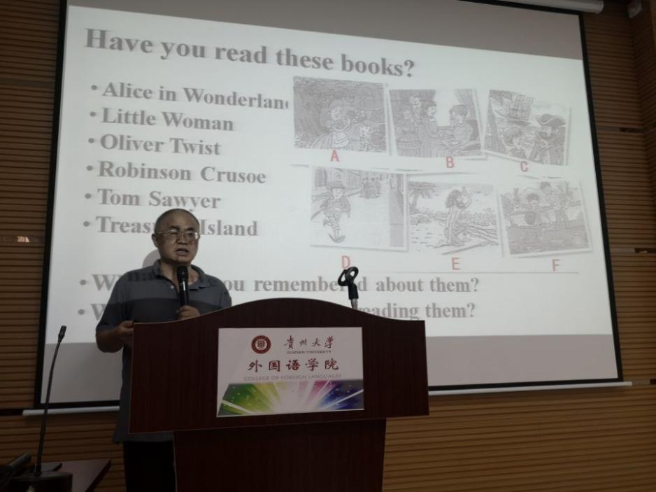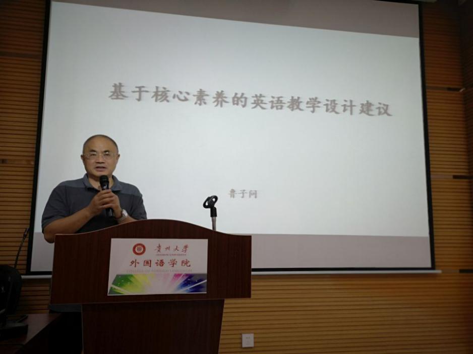 金沙9001cc以诚为本首页讯2 019年8月1日上午,教育部教师教育资源专家委员会专家、教育部首批国培专家、兴义民族师范学院中国民族师范教育研究中心主任鲁子问教授到金沙官网为贵州省中小学英语骨干教师能力提升培训班学员做了一场主题为“基于核心素养的英语教学设计建议”的讲座,培训班全体学员参加了此次讲座,讲座由金沙官网院长周杰主持。