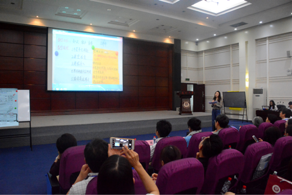 30日,全国41所高校的50余名青年骨干教师参加了以“新时期背景下的日语人才培养与课堂教学设计”为主题的工作坊。本次工作坊共分为五个班级,分别为基础日语班、听力与会话班、阅读与写作班、高级日语与翻译及其他专业课班、大学日语及旅游商贸日语班。在各位研修专家指导下,参加工作坊的老师们通过反思自己课堂的不足,组内研讨,设计形成教案,制作海报等环节,达到转变教学理念,提升教学设计能力和反思能力的效果。31日上午,在行政报告厅举行了各组教学设计的成果展示,推选出的六位代表还在大会上就本组的教学设计方案进行了汇报。林洪老师从追求课程核心价值、注重教材的分析和处理、合理安排课堂时间及提高有效教学等角度出发,对各组的课堂设计给予了中肯的点评。