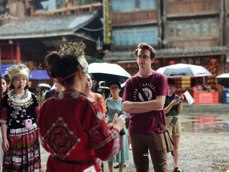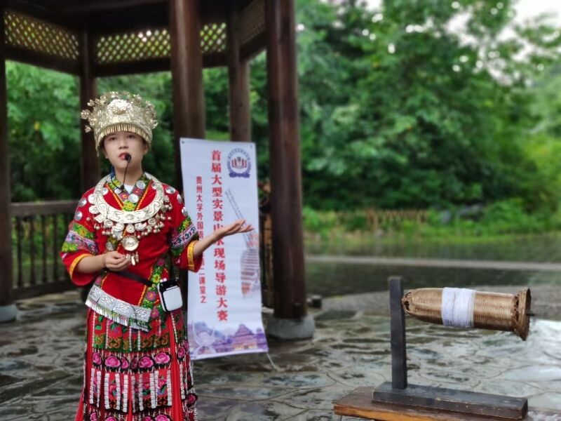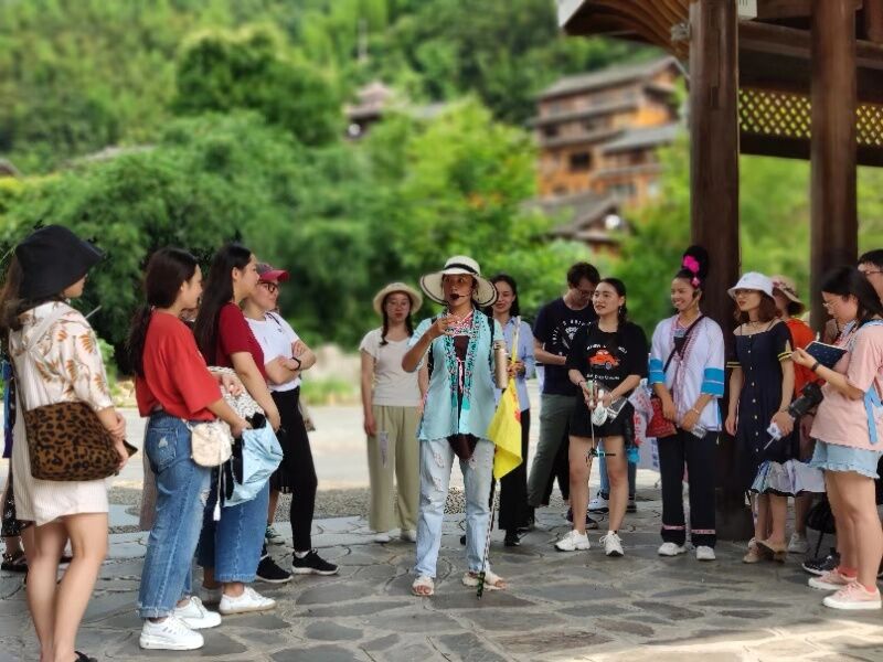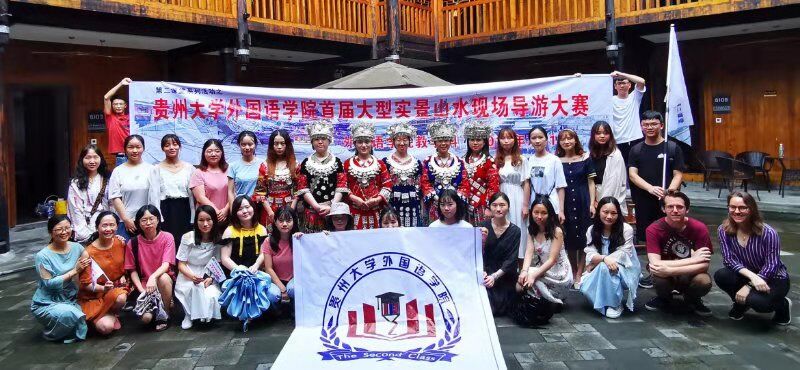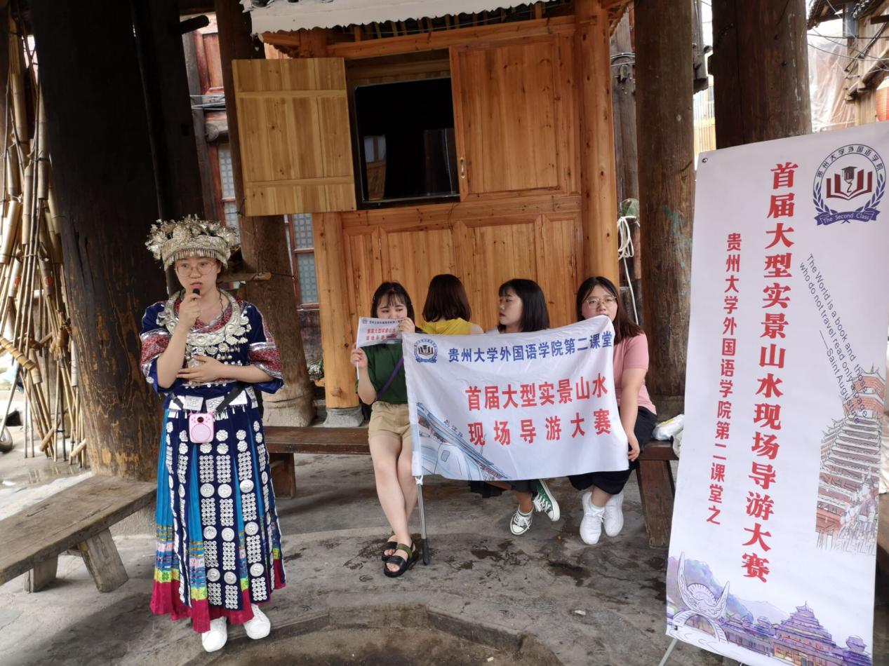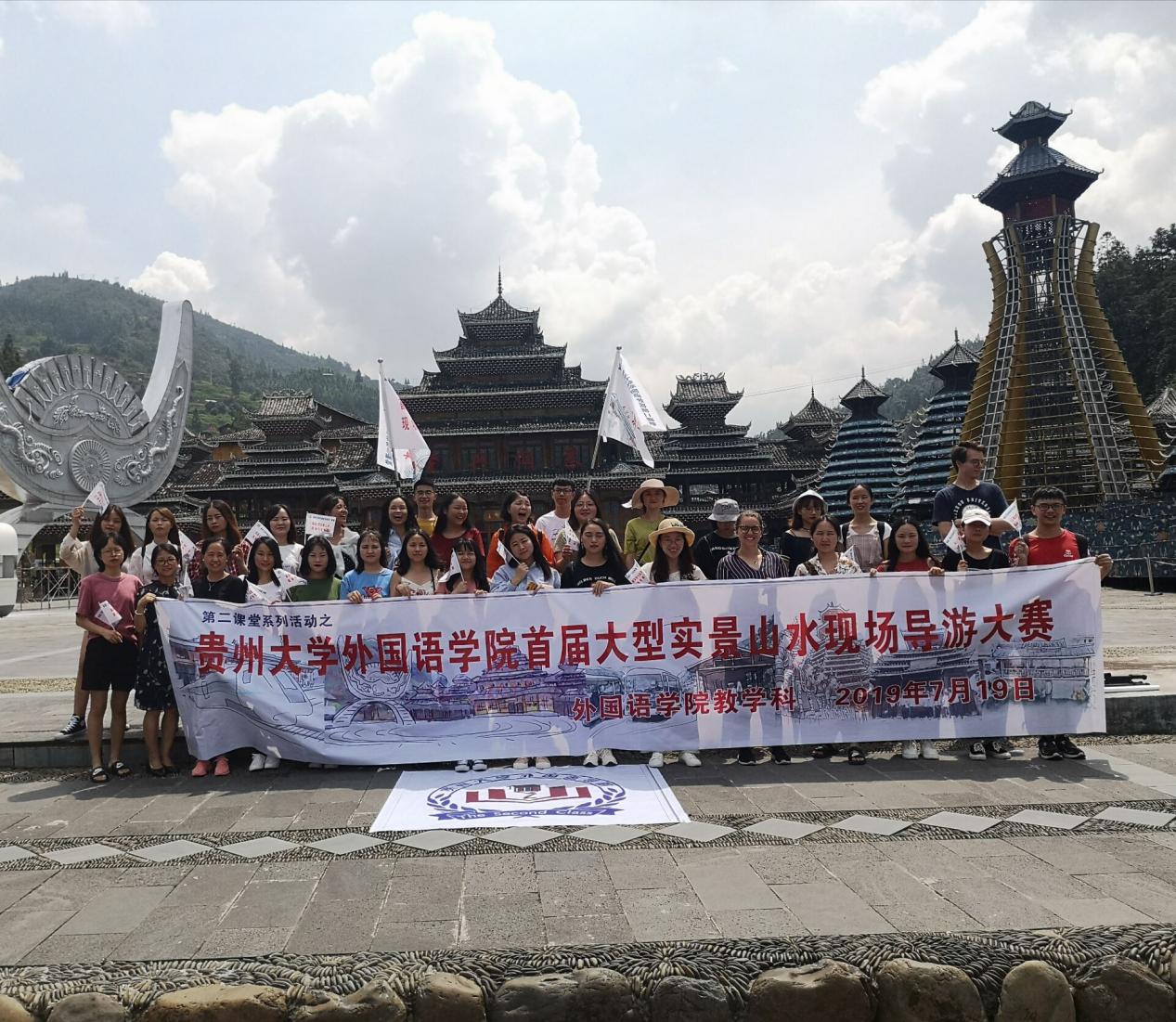 金沙9001cc以诚为本首页教学科讯 2019年7月19日,金沙9001cc以诚为本首页第二课堂首届大型实景山水现场导游大赛在肇兴侗寨拉开帷幕。外教Austin老师,Zoe老师,关志远老师,田婷老师,彭芳坪老师及英语163班全体成员参与此次活动。此次现场导游大赛与以往的模拟导游大赛最大的不同是同学们来到了真实的旅游景点,切身体会真实的导游行业。