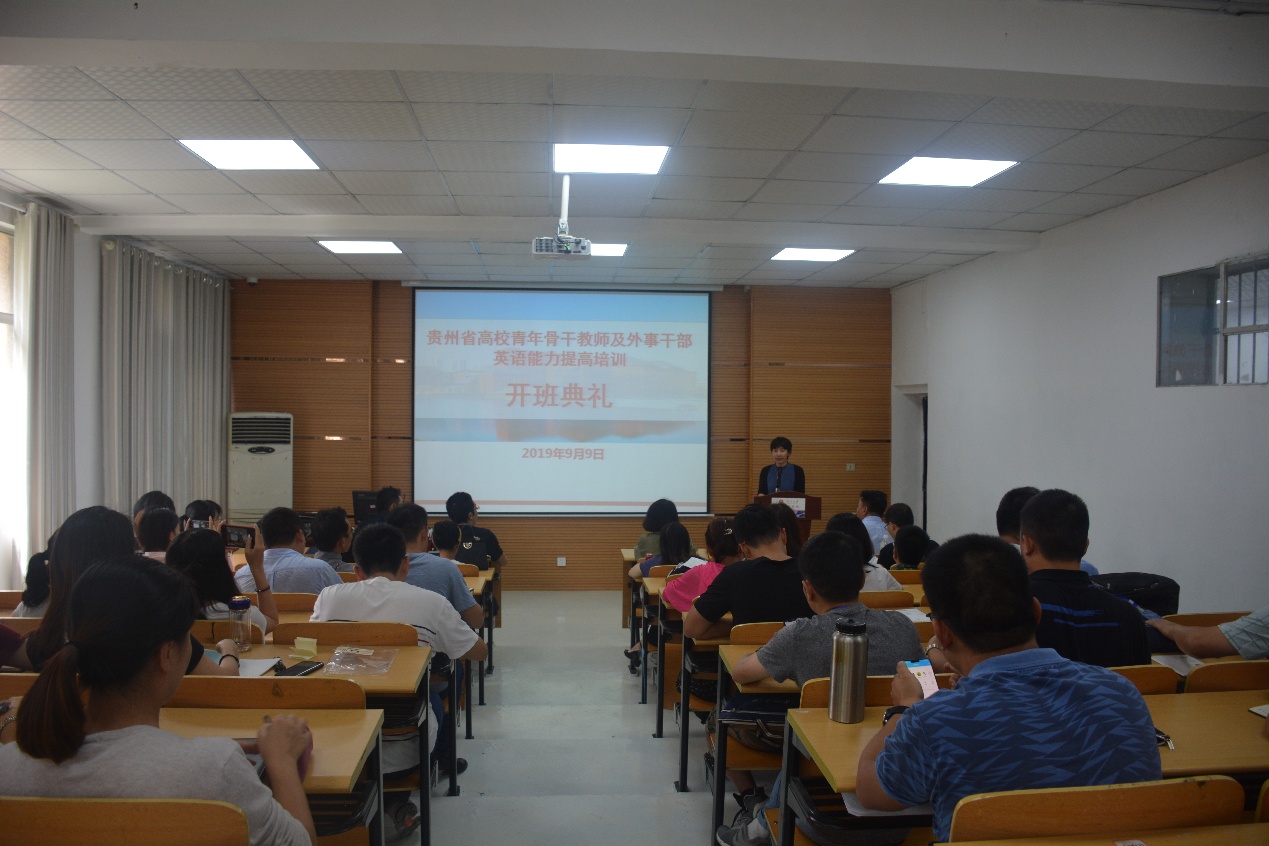 金沙9001cc以诚为本首页党政办讯 2019年9月9日下午2:00,2019年贵州省高校青年骨干教师公派出国留学及外事干部英语能力提高培训班开班仪式在金沙官网226教室举行。金沙官网党委书记白震、院长周杰以及培训班班主任老师出席开班仪式。