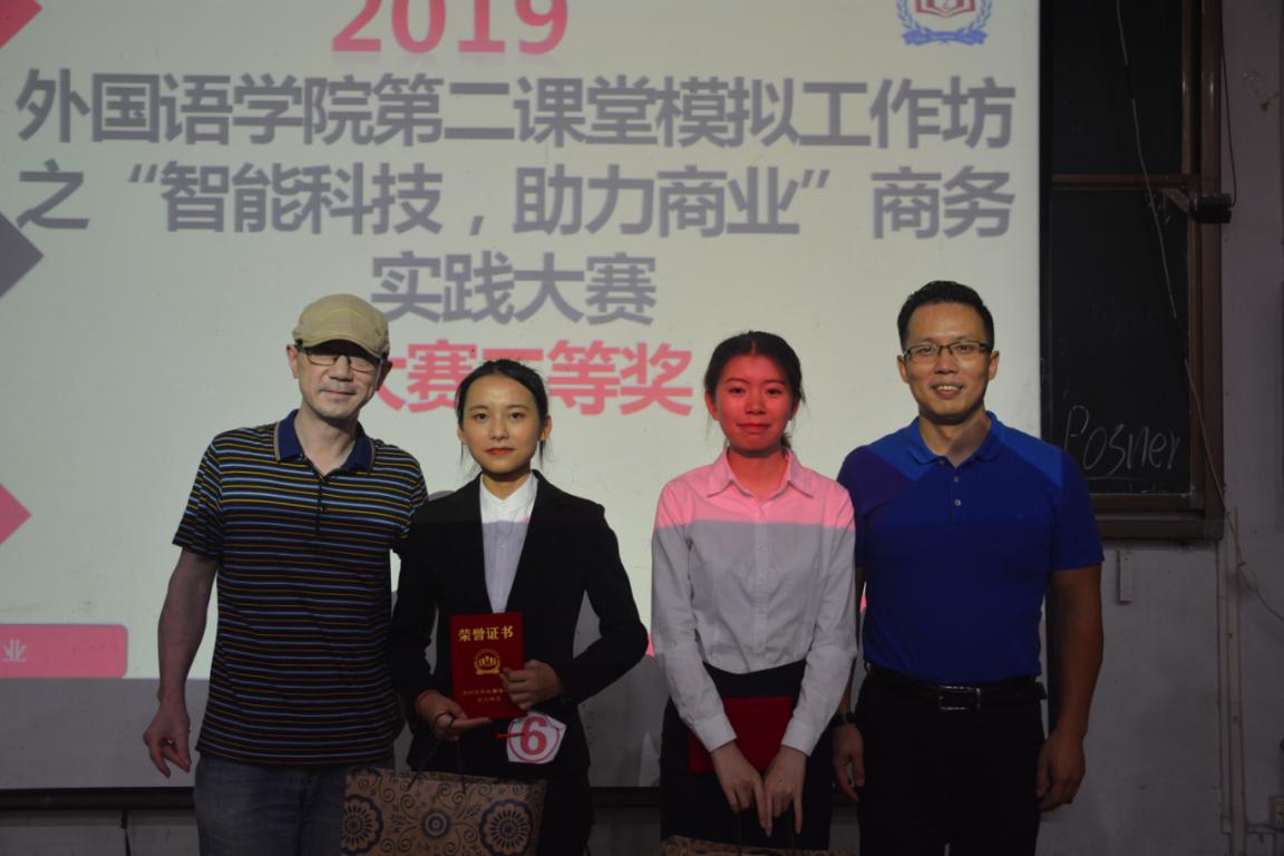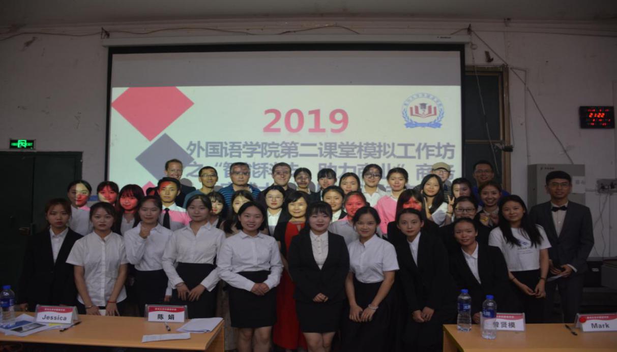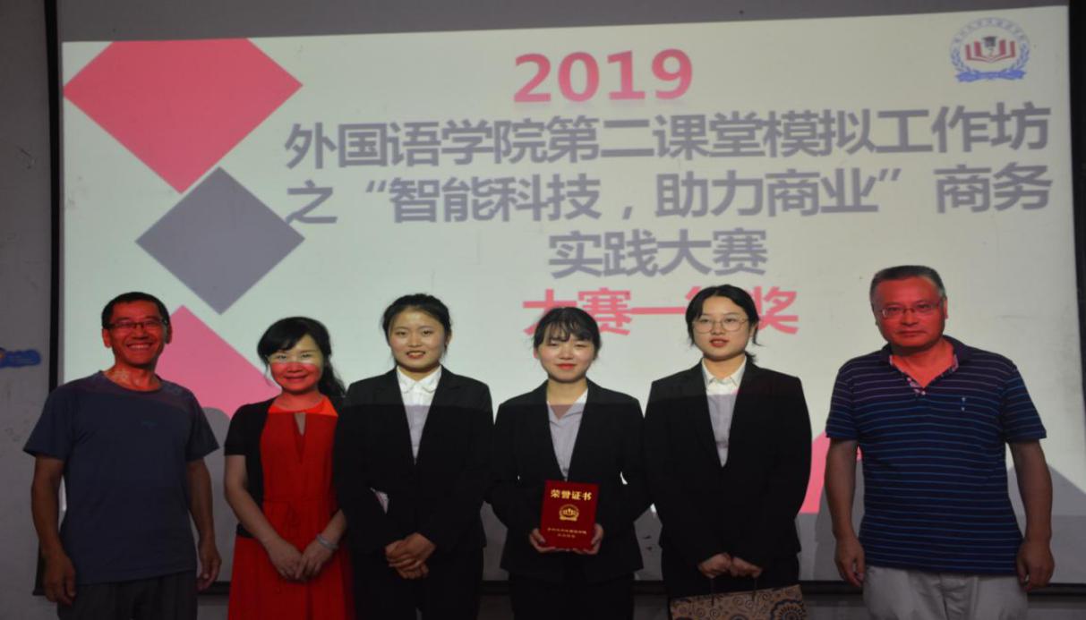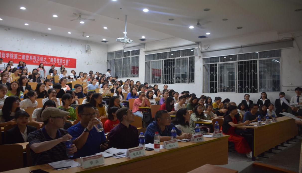 金沙9001cc以诚为本首页教学科讯 为丰富学生课余生活,增强学生技能,金沙官网于2019年9月17日星期二晚7点在外阶一举办金沙9001cc以诚为本首页第二课堂模拟工作坊之“智能科技,助力商业”商务技能大赛。本次大赛邀请了金沙官网副院长宁梅、英语系主任曾贤模、商务英语系主任陈娟、商务英语系老师高应昶、外教Mark、外教Jessica担任评委。各年级各班共计200人参与了本次比赛。