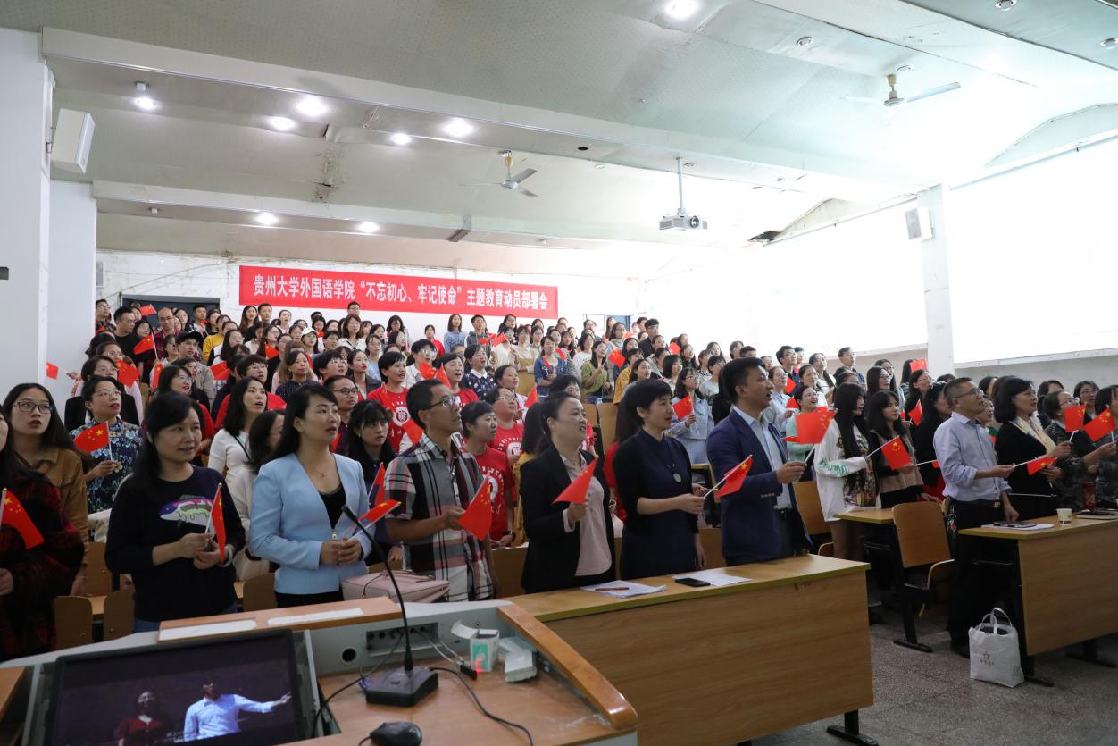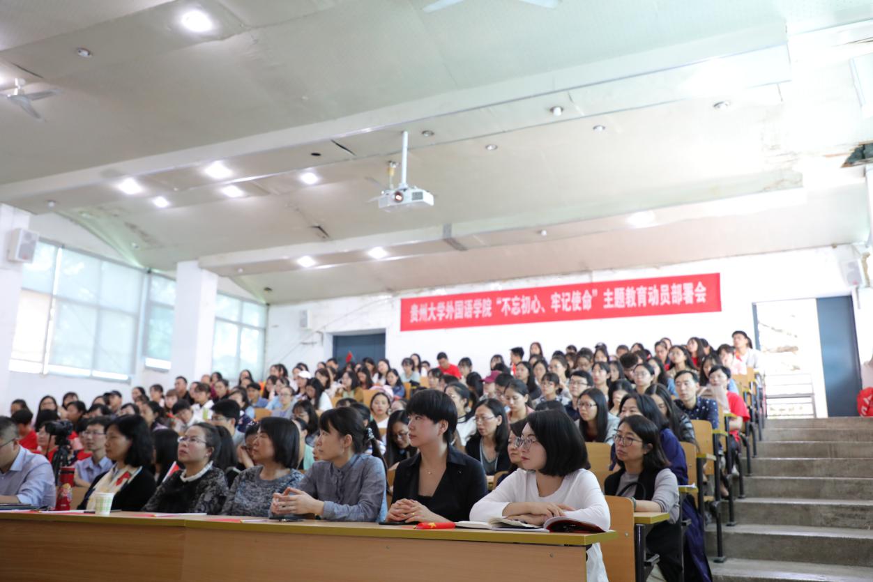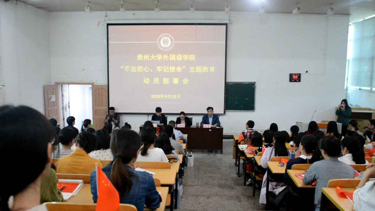 金沙9001cc以诚为本首页党政办讯 9月23日中午1时,我院“不忘初心、牢记使命”主题教育动员部署会在外语楼外阶二教室举行,学校“不忘初心、牢记使命”主题教育第三巡回指导组侯玲娅、骆恩全出席会议,学院在职处级干部,各科室、系、部、教研室、硕点负责人,全体师生党员参加了动员部署会。会议由院长周杰主持。
