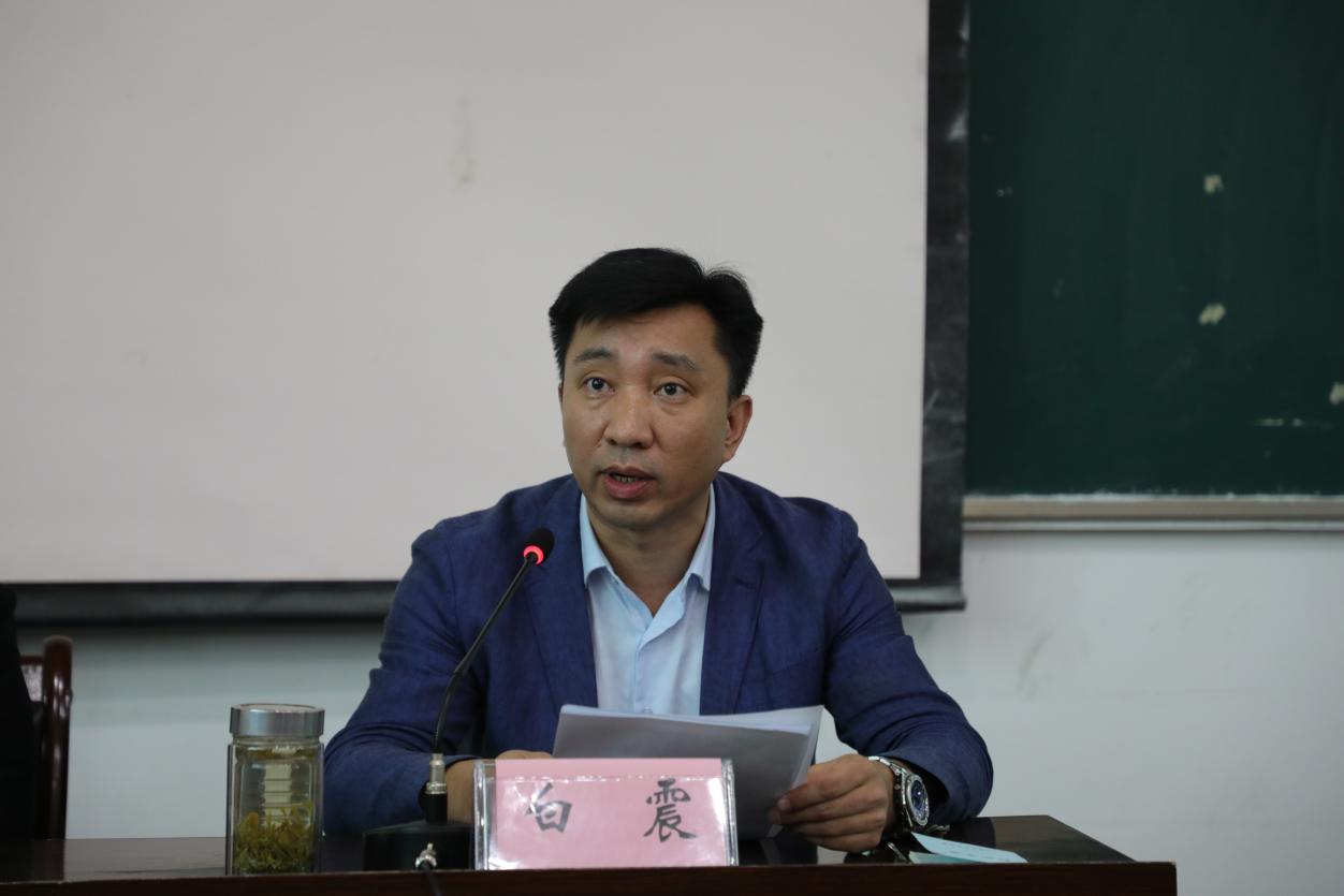 会议第一阶段,学院党委书记白震作动员讲话。他表示“不忘初心、牢记使命”主题教育是加强高校党建和思想政治工作、确保党对教育工作全面领导的重要机遇,是促进高等教育内涵式发展、建设高等教育强国的强大动力。学院正处于内涵式和跨越式发展的重要阶段,我们必须要紧抓此次主题教育,使学院各项工作更上一层楼。他对学院开展好主题教育提出三点意见:一要提高政治站位,深刻认识“不忘初心、牢记使命”主题教育重大意义;二要领会目标任务,切实抓好“不忘初心 牢记使命”主题教育各项工作;三要加强党的领导,努力确保“不忘初心、牢记使命”主题教育取得实效。全院上下要同心同德、同向同行,以舍我其谁的担当精神、逆水行舟的忧患意识,不忘初心、牢记使命,紧扣立德树人根本任务,不断加大改革力度、提升发展速度、加快建设进度、改进服务态度,续写贵大外院发展的新篇章,为实现中华民族伟大复兴作出更大的贡献。