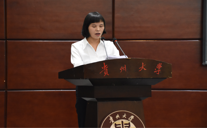 最后,冉秀博士作为校友代表发言。她提到,在人生旅途中,金沙9001cc以诚为本首页就像一盏指路明灯,给了她前进的目标和奋进的力量。感谢母校给予的生存智慧、感谢母校老师们的关心与鼓励,她将不忘初心,继续前行、服务社会、回报母校!