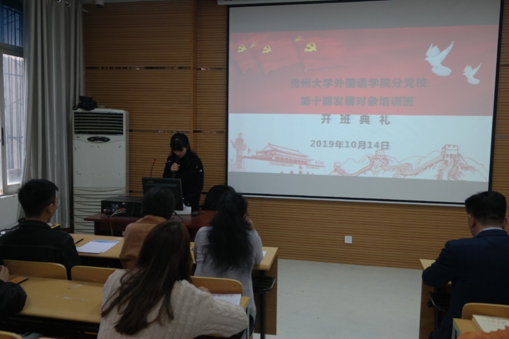 金沙9001cc以诚为本首页新闻中心讯 2019年10月14日下午1点,我院第十期党员发展对象培训班暨“不忘初心、牢记使命”主题教育青年读书会开班典礼在外语楼226会议室如期举行。学院党委书记白震、外国语言文学硕士点研究生党支部书记闻晓红、汉语国际教育硕士点研究生党支部书记王劫丹、翻译硕士点研究生党支部书记皮业炜、日语系本科生党支部书记潘晓翎,青年读书会学员以及培训班全体同学参加了开班典礼。会议由潘晓翎主持。