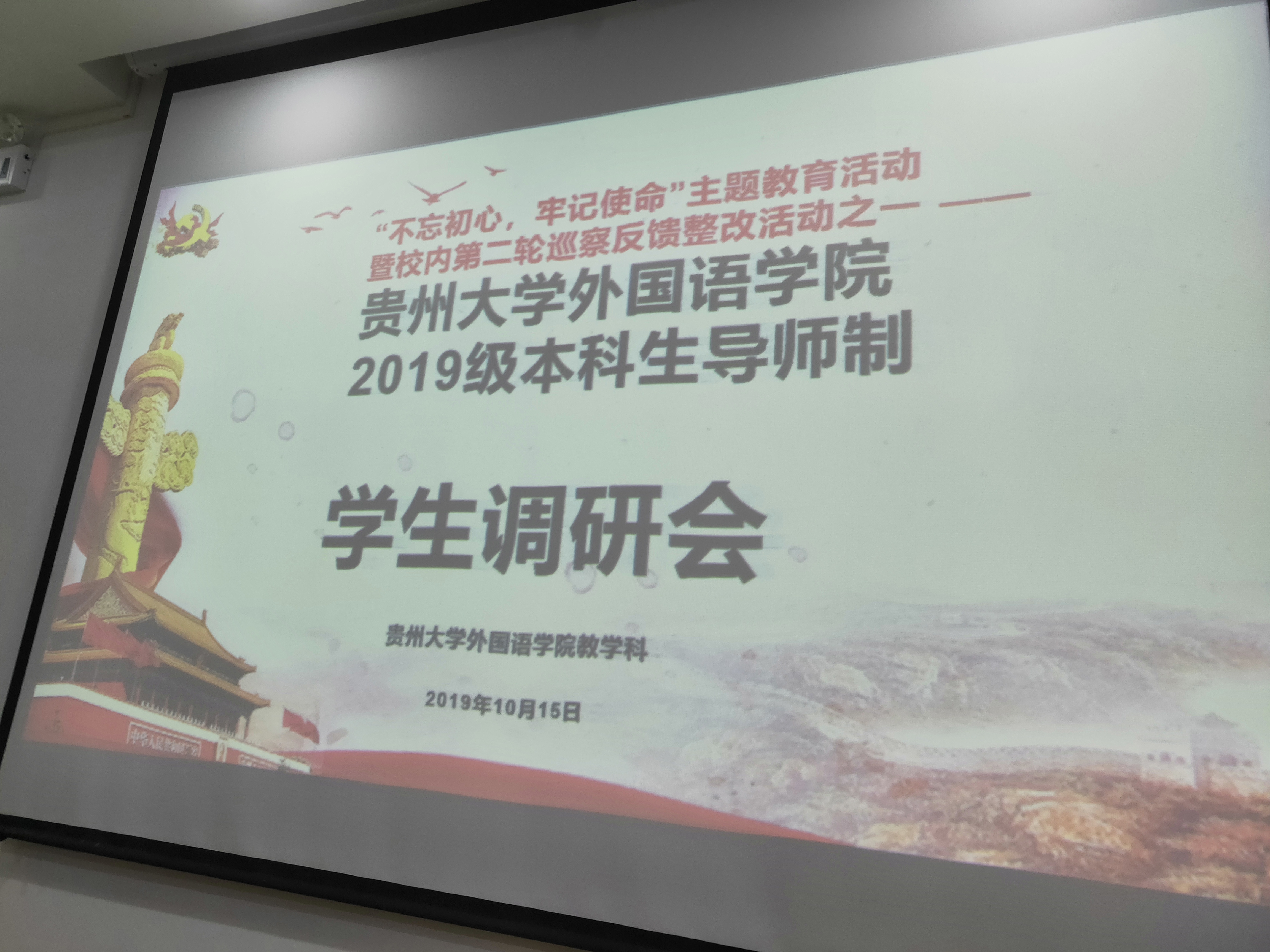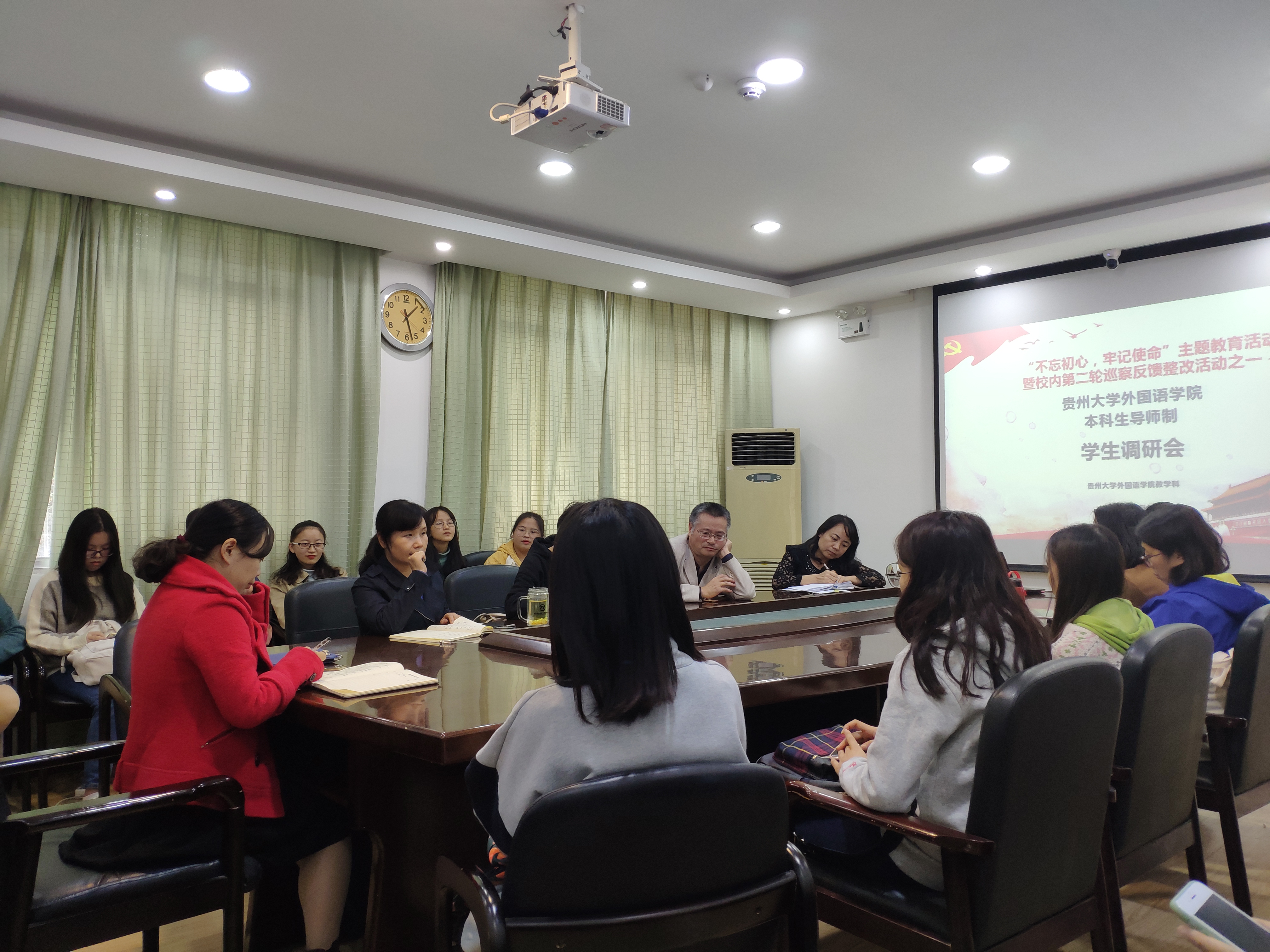 金沙9001cc以诚为本首页教学科讯 2019年10月15日,金沙官网“不忘初心、牢记使命”主题教育本科生导师制学生调研会(分别针对2017级学生代表和2019级学生代表)在外院216会议室顺利召开。学院副院长宁梅、各系系主任、教学科科长李蓉、教务员涂开艳及2017级和2019级各班班长、学习委员参加了学生调研会。