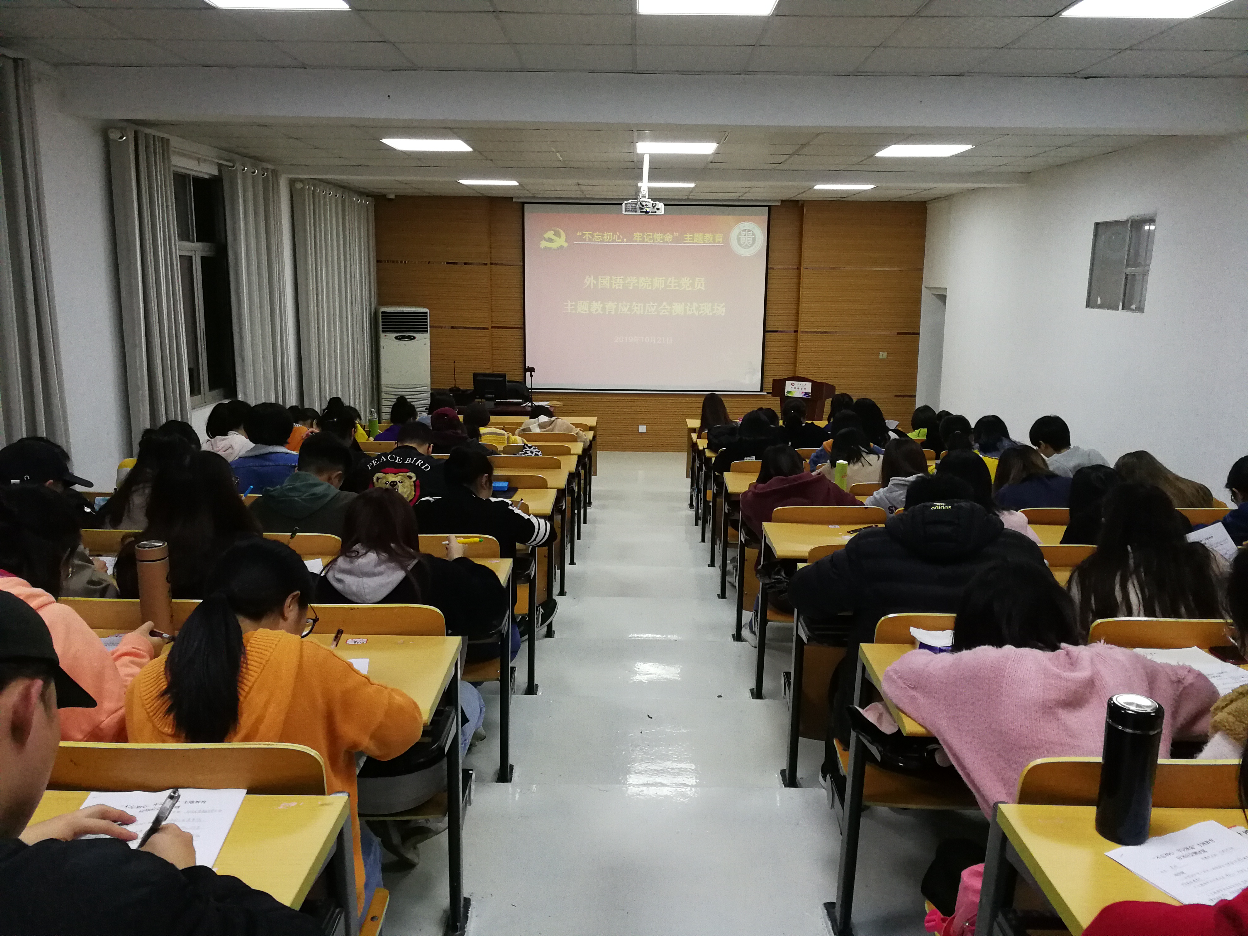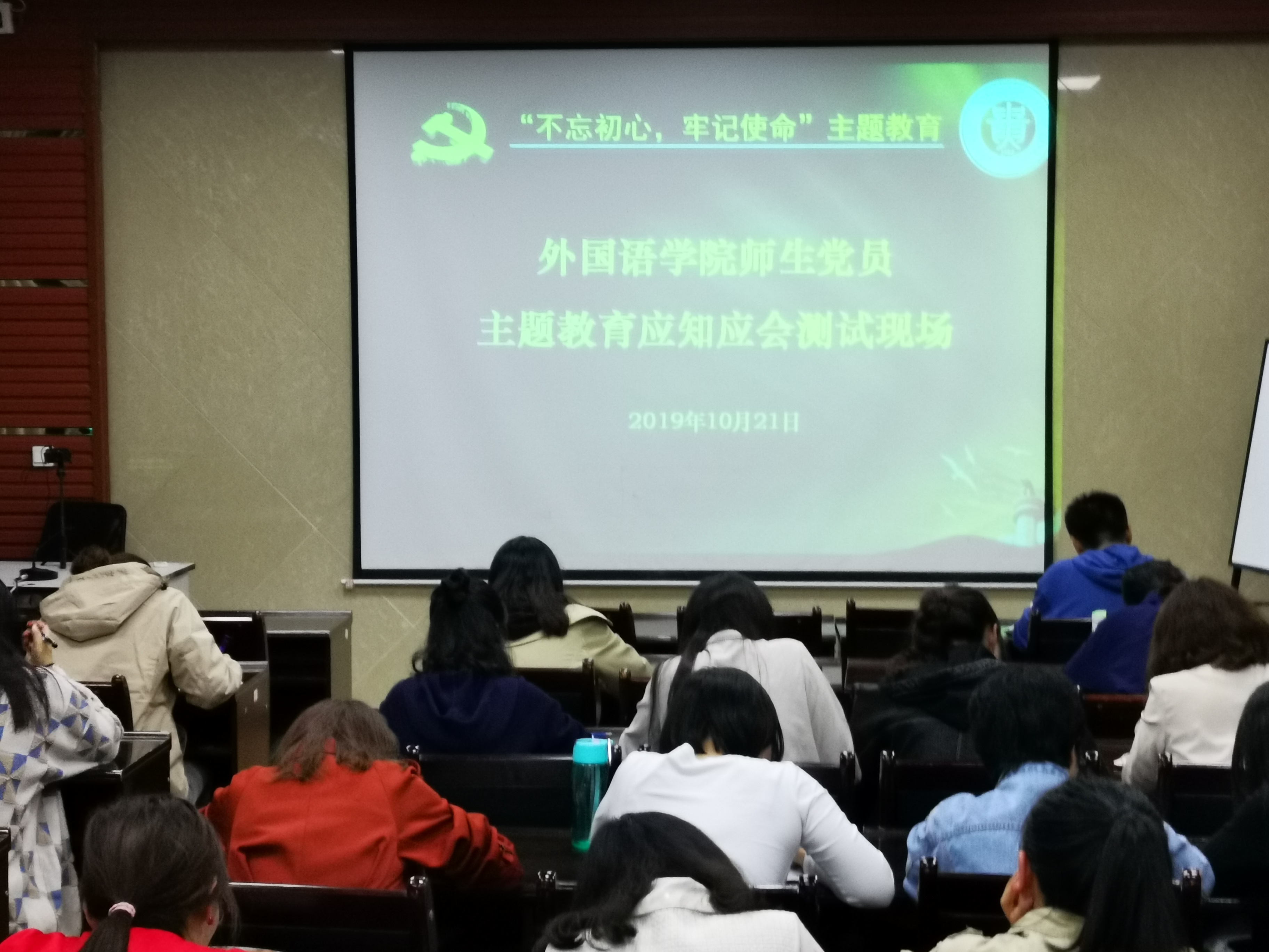 外国语学院党政办讯2019年10月21日,金沙9001cc以诚为本首页党委针对全院师生党员在学院226报告厅、201会议室举行了四场“不忘初心、牢记使命”主题教育应知应会知识现场测试,旨在促进全院党员深刻学习领会主题教育内涵,进一步达成“理论学习有收获”的具体目标。