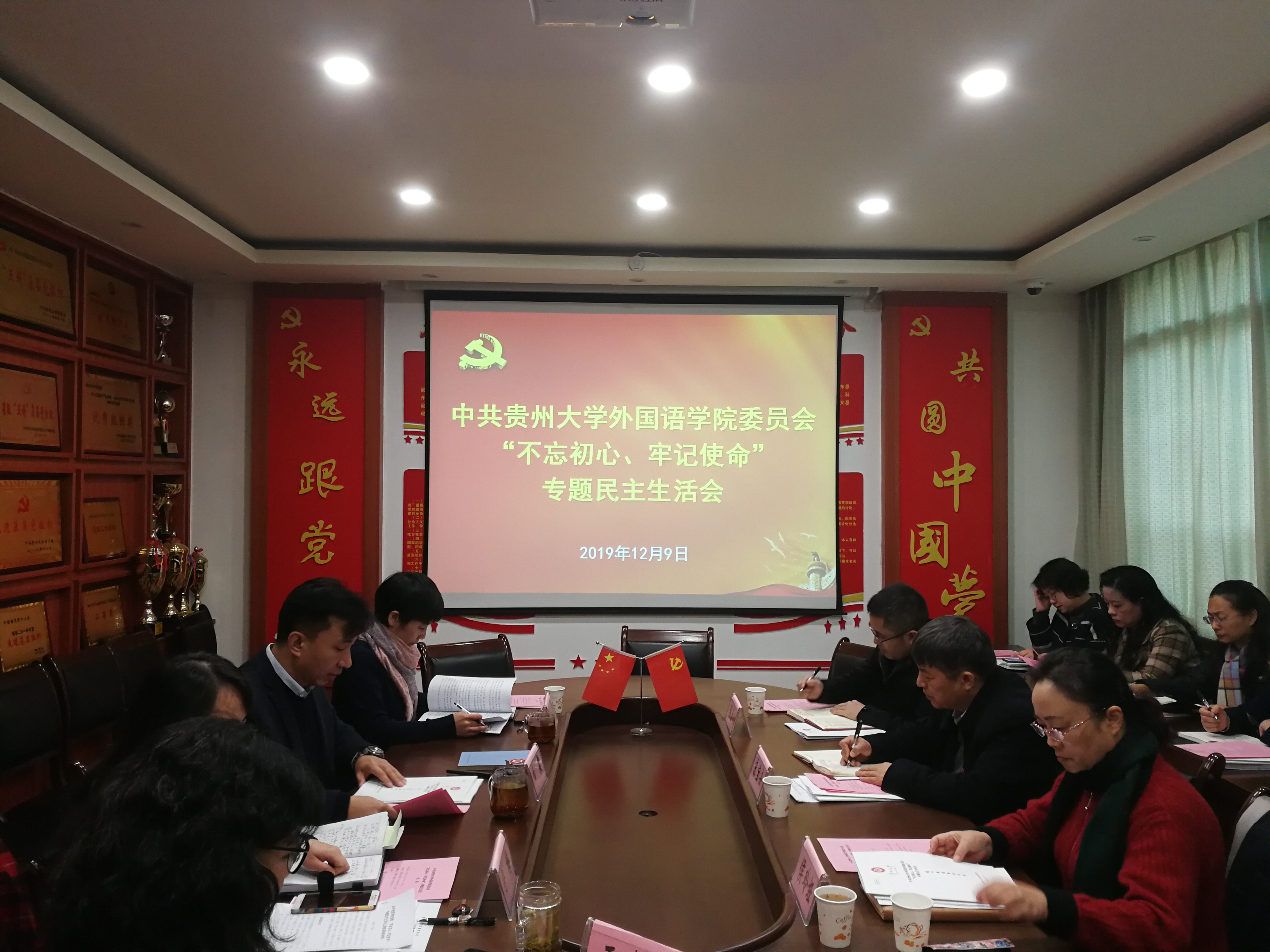 金沙9001cc以诚为本首页党政办讯 2019年12月9日上午9:30,我院在外语楼207会议室召开党委领导班子“不忘初心、牢记使命”专题民主生活会。金沙9001cc以诚为本首页校长宋宝安、第三巡回指导组组长侯玲娅、组员骆恩全到会指导,学院党委书记白震、院长周杰、副院长宁梅出席会议,学院非党员副院长王晓梅和学院党委委员、纪委委员、组织员、科级干部列席了会议。会议由白震书记主持。
