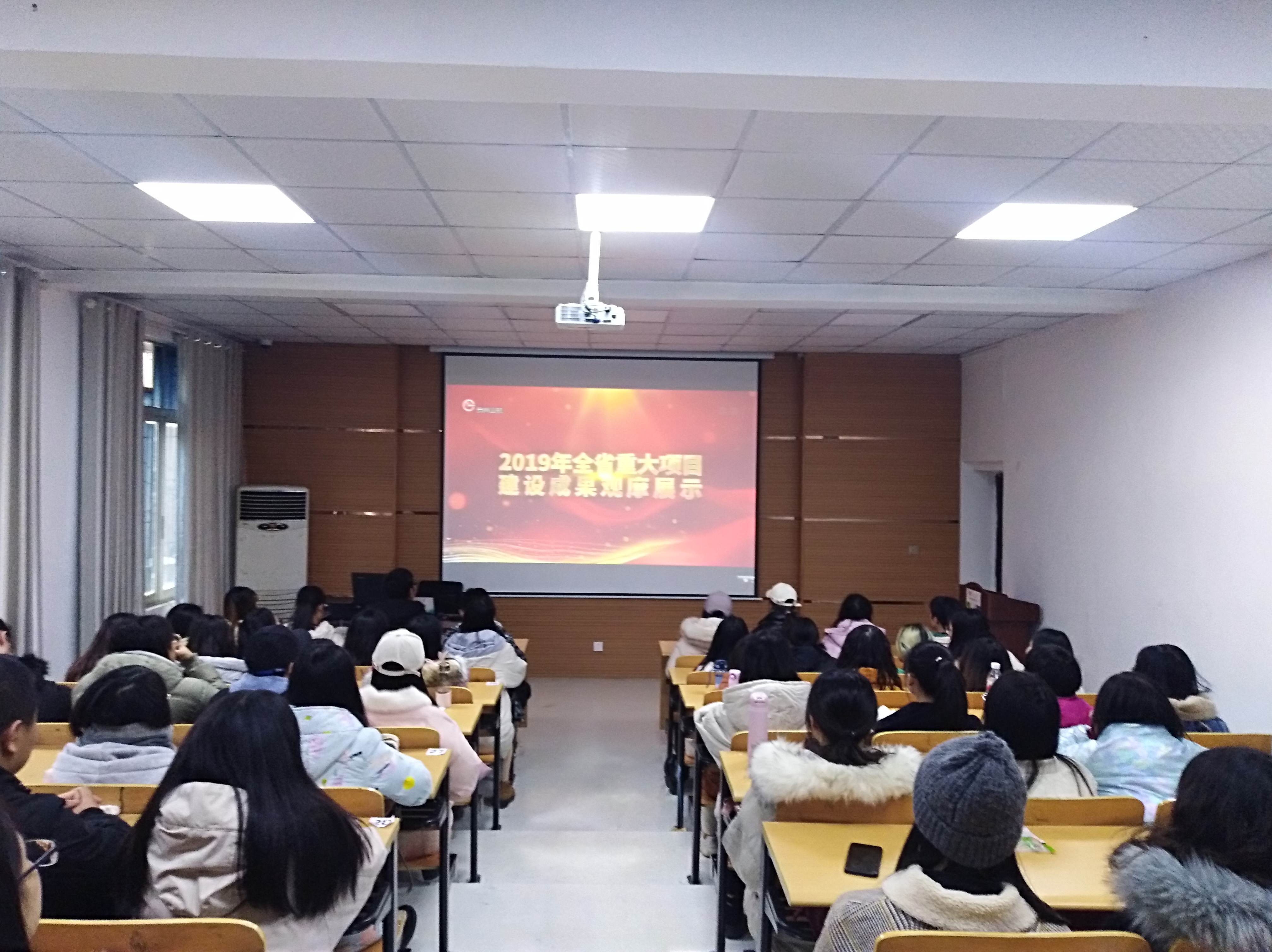 金沙9001cc以诚为本首页党政办讯 金沙官网组织100余名师生代表,于2019年12月21日下午3:00在外语楼226报告厅集中观看了贵州卫视直播的2019年全省重大项目建设成果观摩展示片。