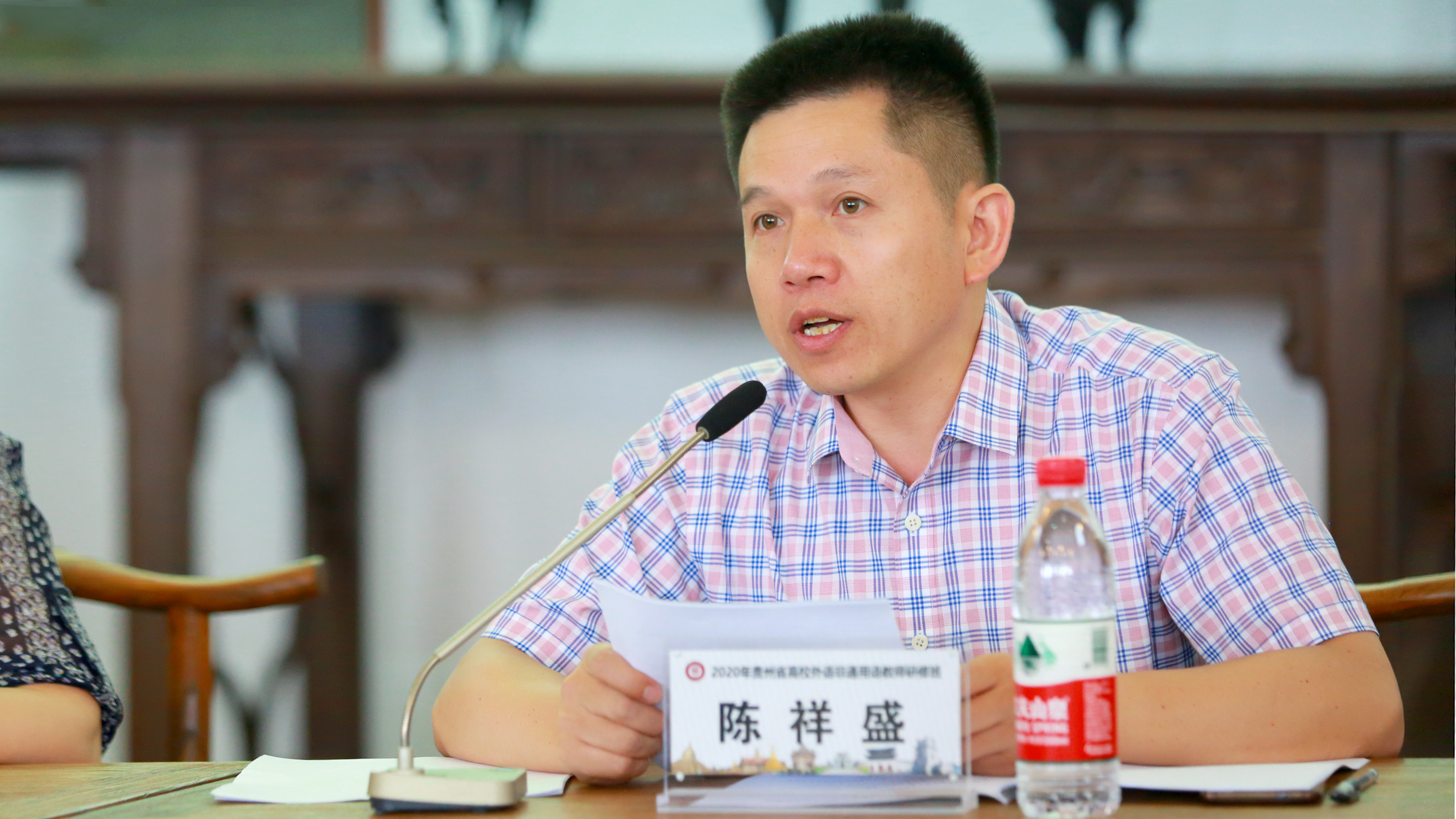 金沙9001cc以诚为本首页副校长陈祥盛教授作开班典礼致辞。首先,他谨代表金沙9001cc以诚为本首页对本次研修班顺利开班表示热烈祝贺,并对来自各贵州省高校的外语教师表示最诚挚的问候。接着,他就金沙9001cc以诚为本首页的办学历程进行了简要介绍,并指出我校非常重视非通用语专业的建设,缅甸语本科专业已经取得了教育部备案审批,并于今年正式招生,希望能为贵州服务“一带一路”建设提供人才支撑。最后,他表示希望参会教师能以此次研修班为契机,鼓励教师大家加强科学研究和教学研讨,为推动贵州省服务国家“一带一路”建设工作和对外交流工作作出应有的贡献。