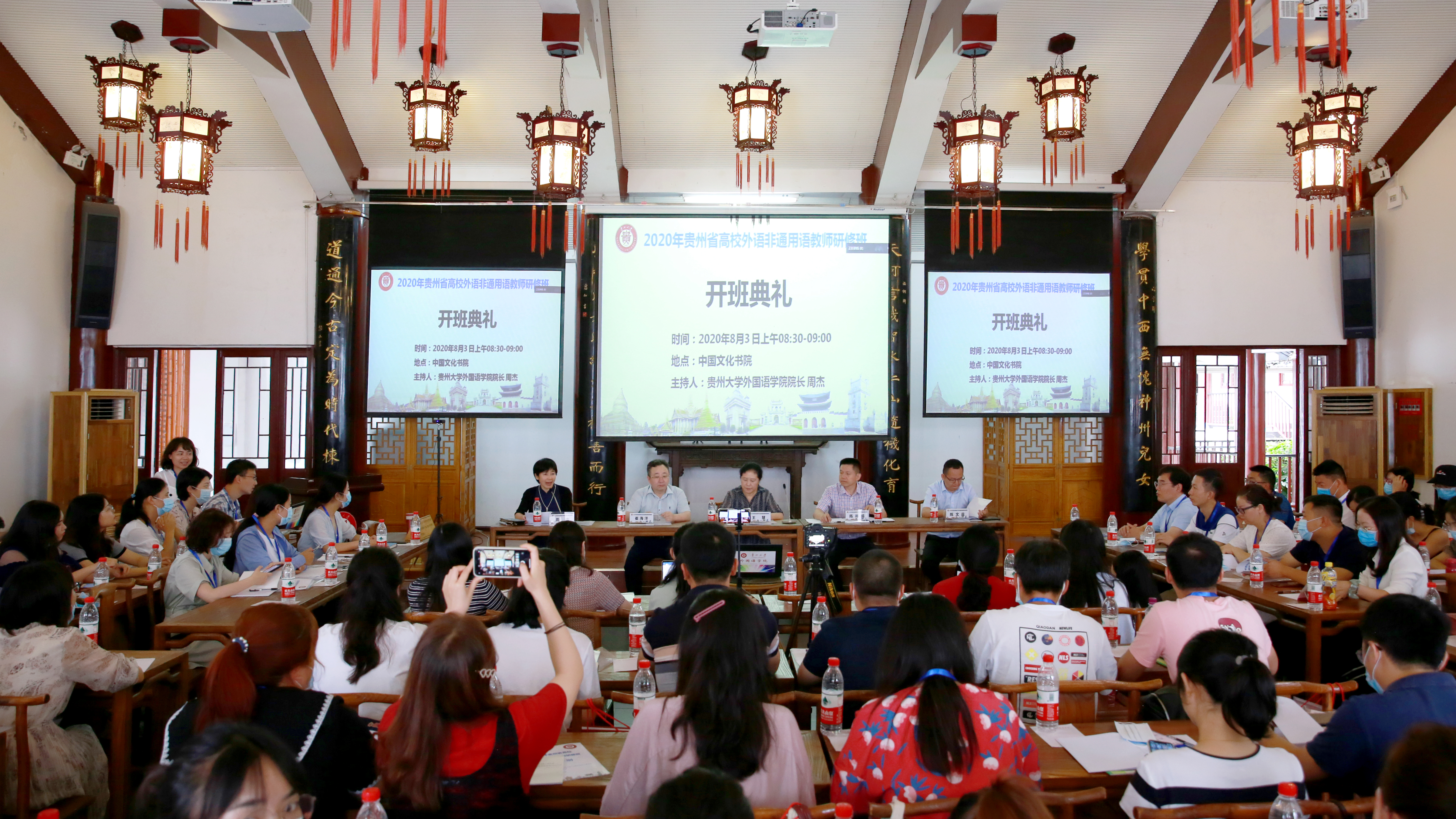 8月3日上午,2020年贵州省高校外语非通用语教师研修班开班典礼在金沙9001cc以诚为本首页中国文化书院顺利举行。教育部高等学校非通用语种类专业教学指导分委员会主任、北京大学教授姜景奎、副主任、信息工程大学教授钟智翔、省教育工会主席、省教育厅党组成员王慧、贵校州大学副长陈祥盛、中国—东盟教育交流周组委会秘书处办公室副主任陈文益、历史与民族文化学院院长崔海洋出席。金沙官网院长周杰主持。