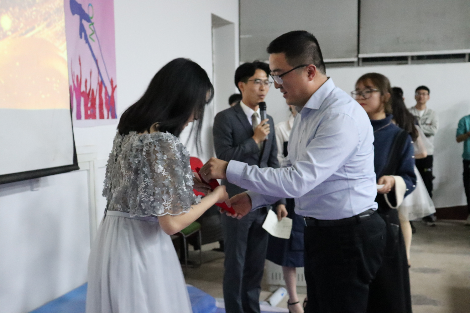 决赛的13人是经过初赛的层层选拔,从近100名参赛者中脱颖而出。晚七点,激动人心的大赛随着一支优雅柔情的民族舞拉开序幕,主持人幽默风趣的介绍,使得活动以轻松愉悦的方式开始进行。比赛刚刚开始,所有观众的眼球就被紧紧抓住,多才多艺的参赛选手凭借过硬的实力赢得了雷鸣般的掌声。观众与主持人热情互动,鼓舞了每一位上台的选手,中场环节出现的两位美女助唱让全场的氛围再次出现高潮,比赛愈发精彩,参赛者们也被这高昂的氛围感染,精彩的表现频频出现,观众们也不吝送上雷鸣般的掌声。面对评委的问题,参赛者也稳扎稳打,从容不迫地交上完美答卷。值得一提的是,充满异乡风情的苗族姑娘介绍了她们多彩的民俗文化,极具特色的民族服装立刻吸引了所有人的目光,观众眼里无不充满向往与好奇。在最后一位选手惟妙惟肖的配音当中,比赛接近尾声,然而观众的兴致更加高昂,依依不舍之中开始等待比赛结果。九点,活动圆满成功,院领导和老师们为获奖选手颁奖并合影留念。