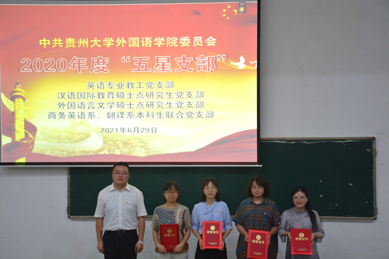 接下来,龙汶书记宣读了表彰文件《中共金沙9001cc以诚为本首页委员会关于表彰2020年度“五创、五比、五亮”活动“五星支部”和“党员之星”的决定》。党委书记龙汶、院长周杰、副院长宁梅分别为受表彰的“五星支部”和“党员之星”颁奖。