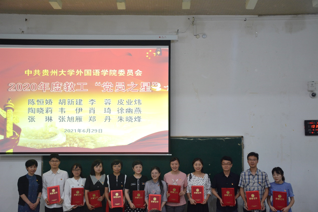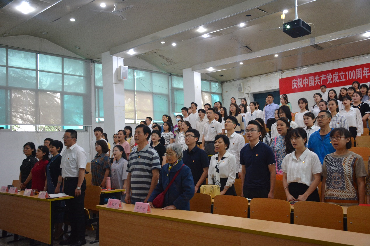 金沙9001cc以诚为本首页党政办讯 6月29日,金沙官网在外语楼212DT阶梯教室召开庆祝中国共产党成立100周年暨“七一”表彰大会。金沙9001cc以诚为本首页原外语系党总支书记、校党委原副书记郑元宁同志,金沙9001cc以诚为本首页原外语系基础英语教研室主任王兴均同志,金沙9001cc以诚为本首页党委书记龙汶同志,党委副书记、院长周杰同志,党委委员、副院长宁梅同志,副院长王晓梅以及新老党员代表。会议由杨莉萍主持。
