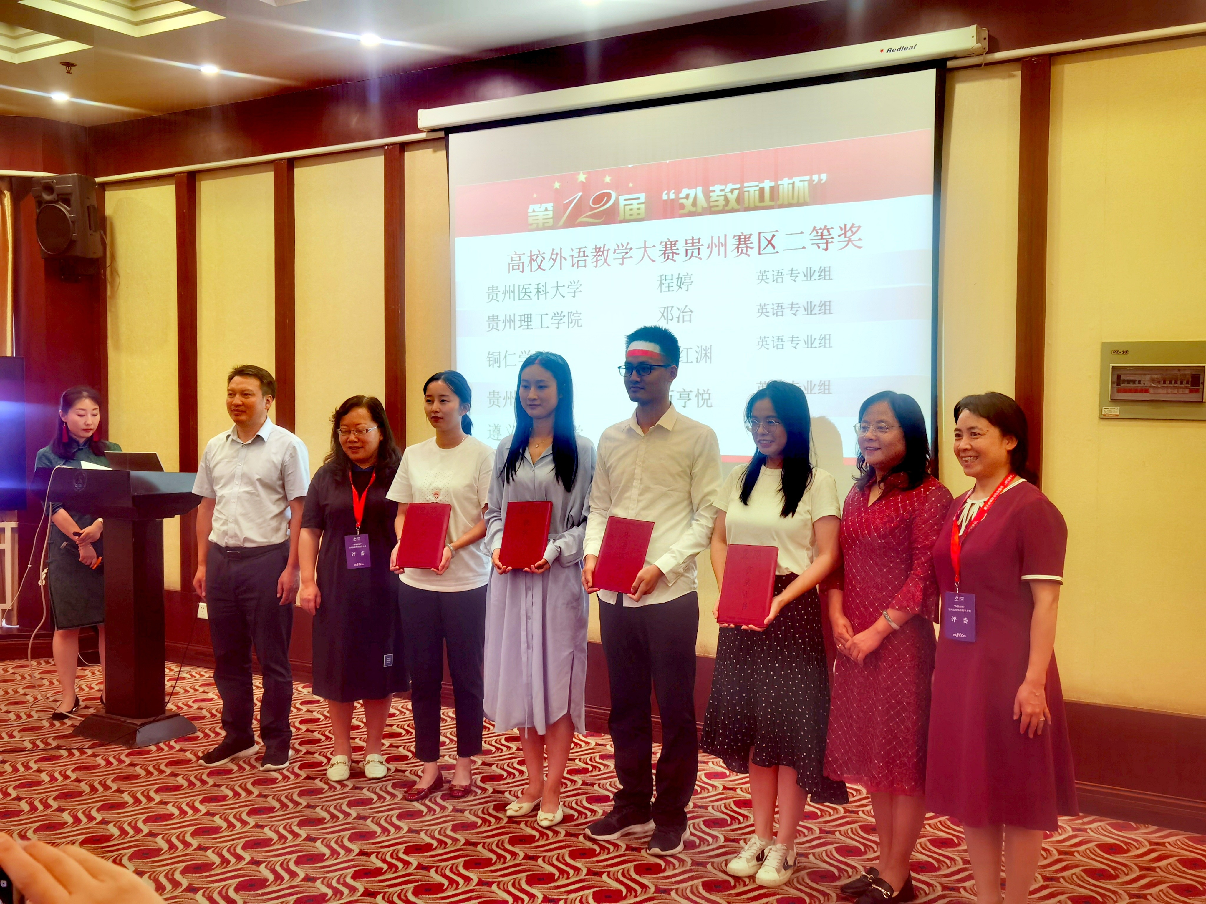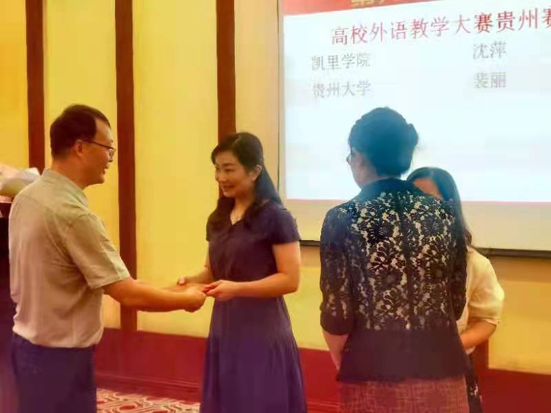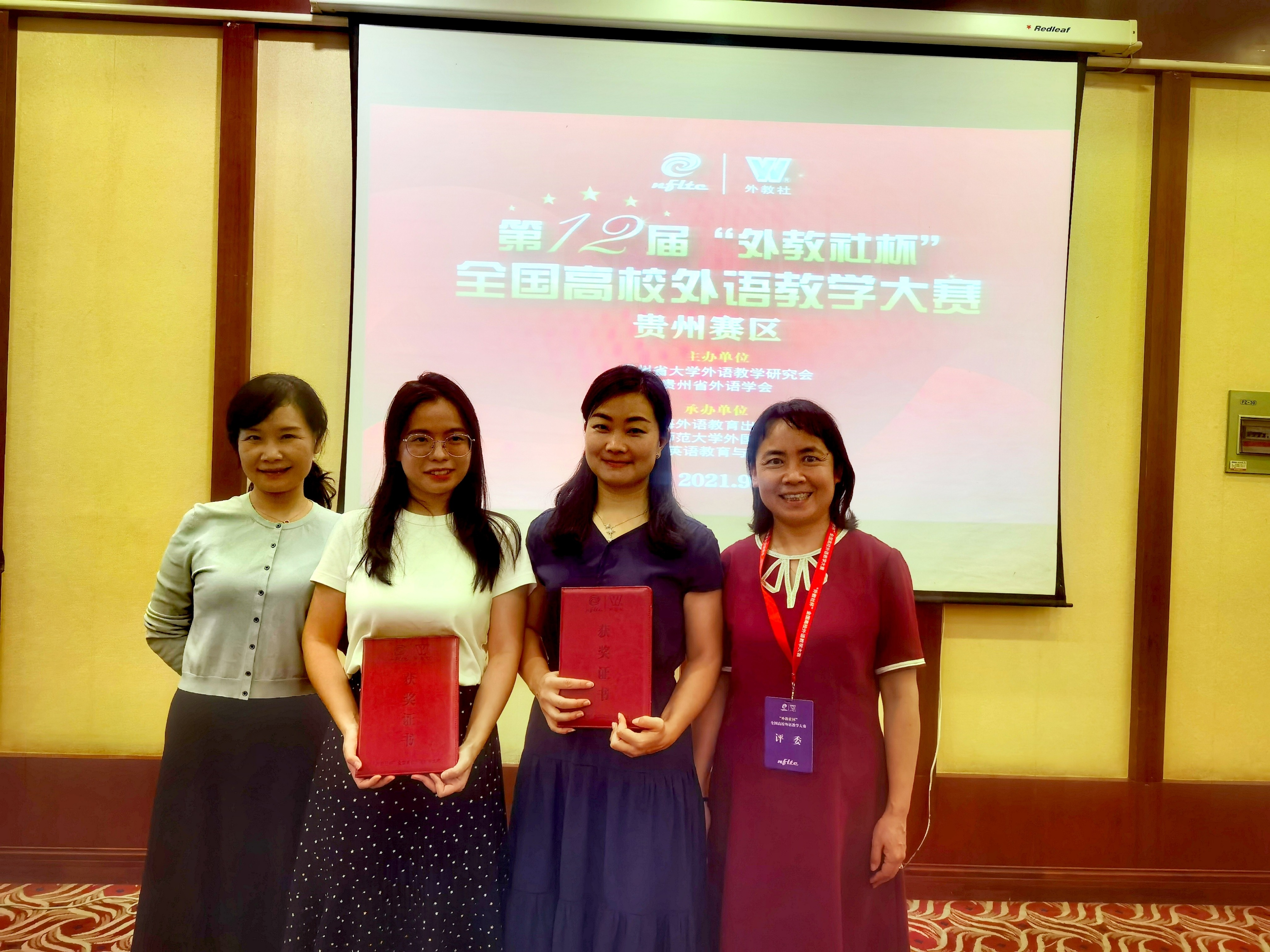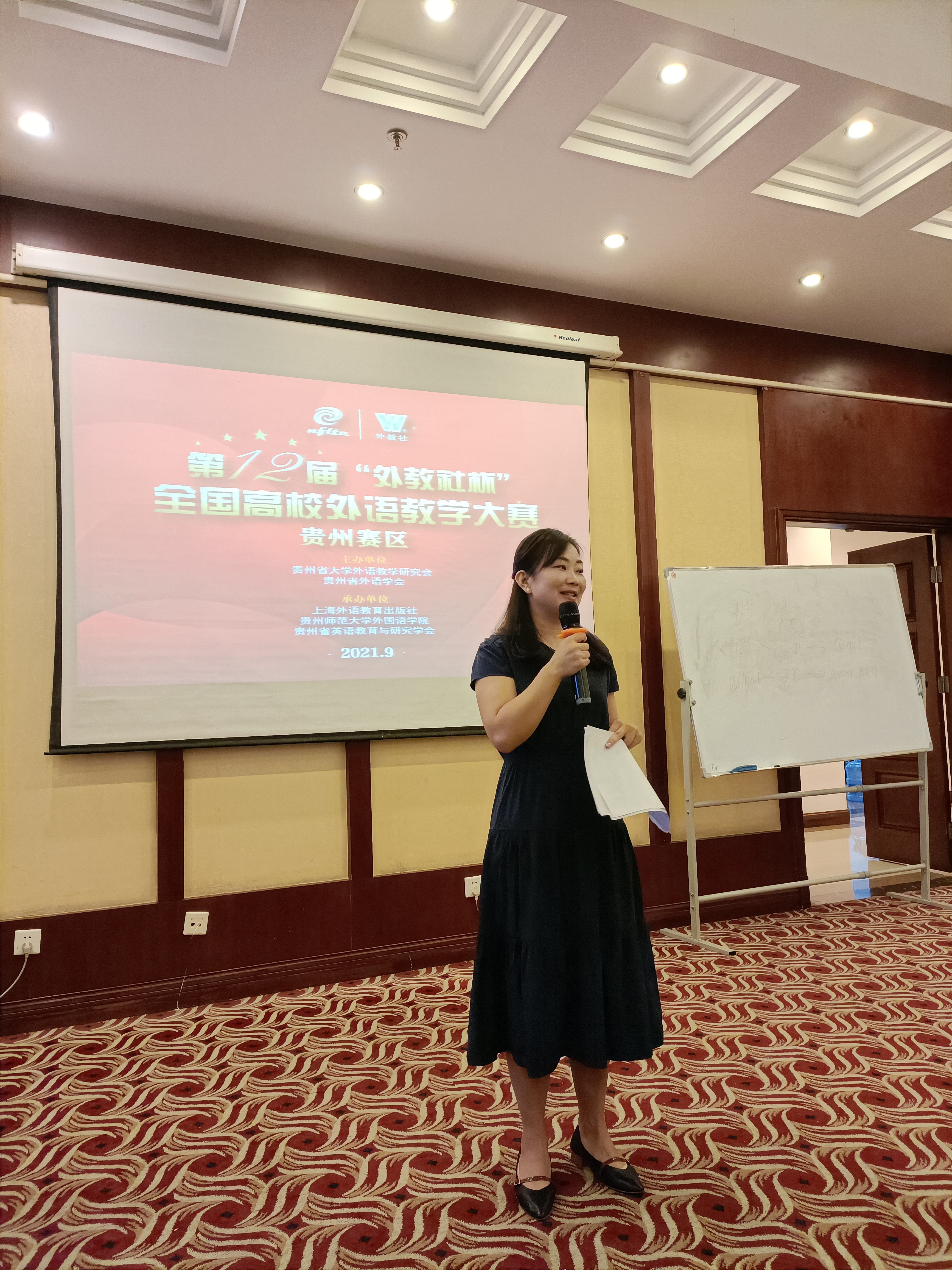 2021年9月25—26日,第十二届“外教社杯”全国高校外语教学大赛(外语专业组)贵州赛区决赛在贵州师范大学举办,来自全省各高校的18名青年教师参加了大赛的角逐,金沙官网教师裴丽和万亨悦获得好成绩。裴丽老师获得商务英语组决赛特等奖,将代表贵州省参加全国总决赛;万亨悦老师获得英语专业组决赛二等奖的好成绩。