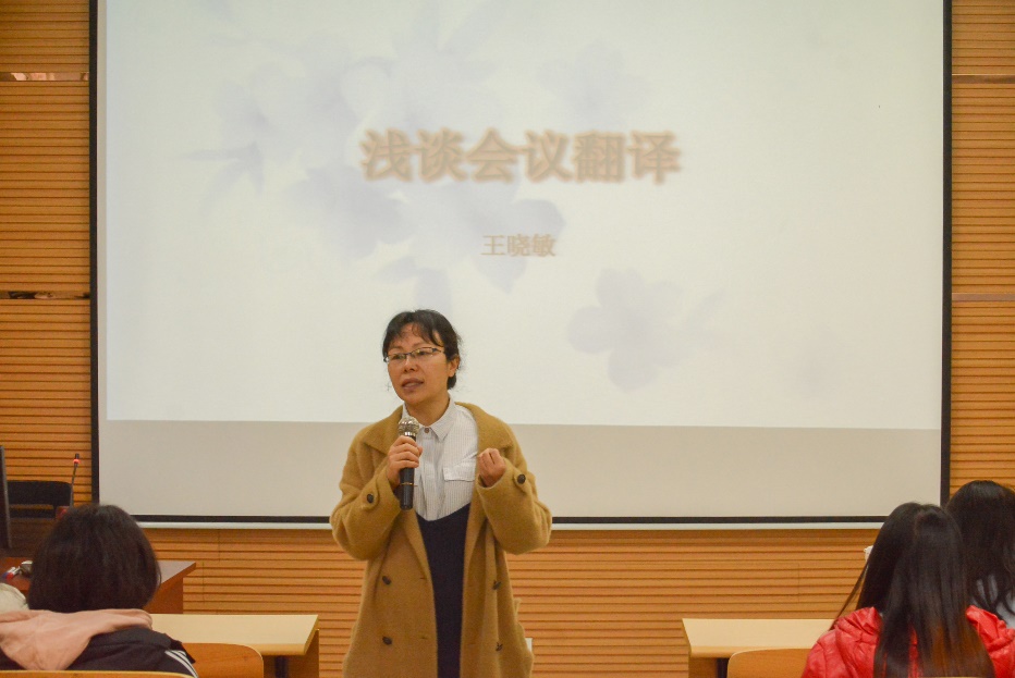 2021年11月19日上午10点30分,外语志愿者社团在金沙9001cc以诚为本首页226报告厅开展了题为“浅谈会议翻译”的主题讲座。本次讲座邀请到金沙9001cc以诚为本首页英语笔译硕士点副主任王晓敏老师作为主讲人,外语志愿者社团全体成员参与此次讲座。