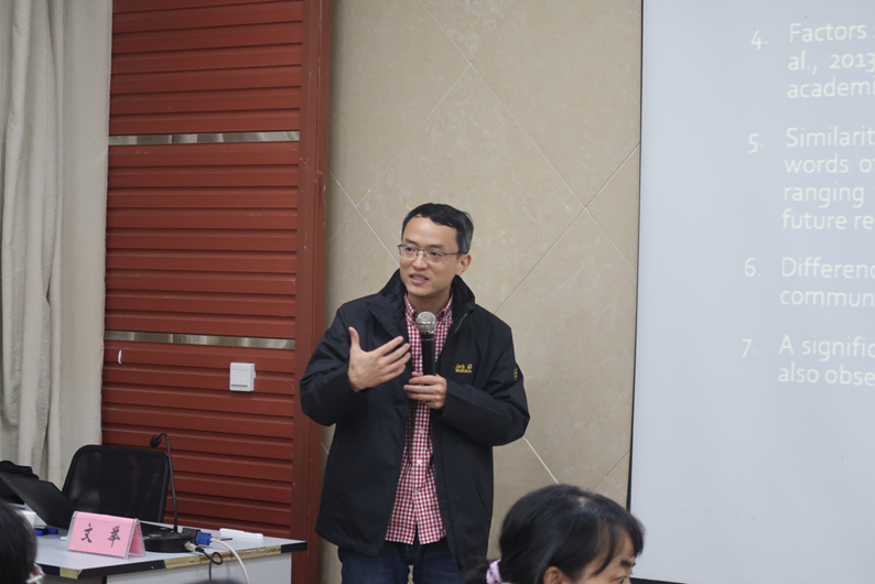 在交流环节,师生积极踊跃地和文举副教授请教和探讨学术问题。针对大家提出的关于研究方法、数据处理、中文文本情感分析、情感分析打分标准等问题,他都一一给予了耐心细致的回答,令广大师生受益匪浅。