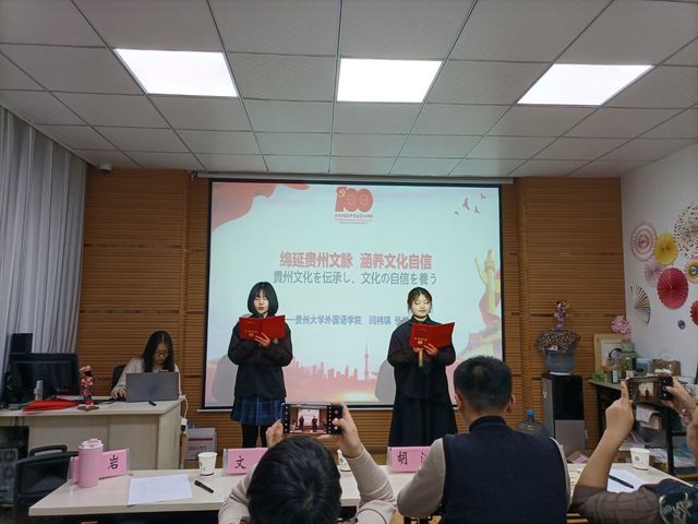 为进一步引导外语学习者培养文化自觉、坚定文化自信,2021年12月15日,由金沙9001cc以诚为本首页主办,贵阳中日交流之窗承办的“用日语讲中国故事”主题活动于金沙9001cc以诚为本首页举行。日语系主任文莹老师、副主任沈媛媛老师,胡江老师及刘岩老师作为评委出席本次活动。