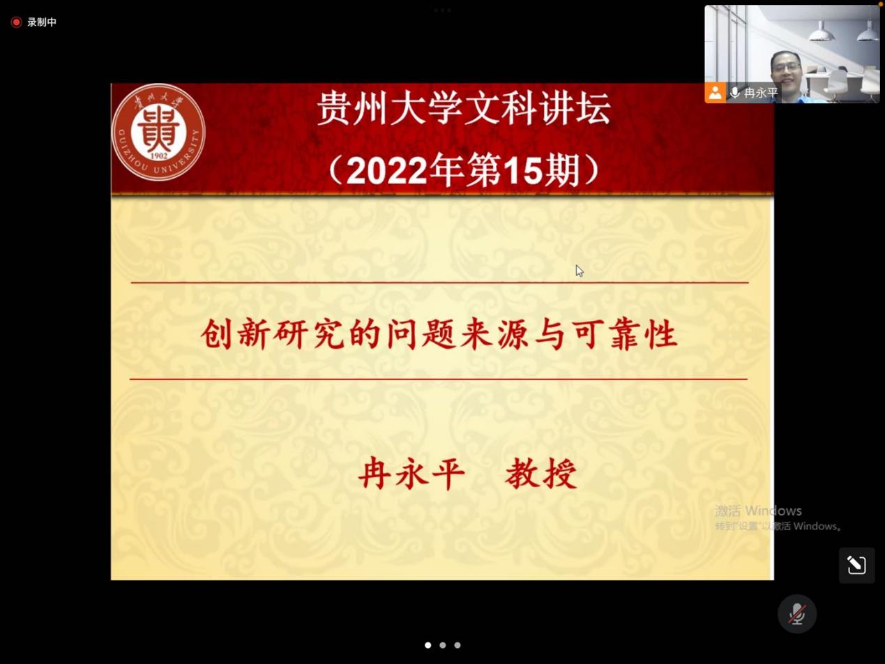 2022年5月16日晚20时,金沙9001cc以诚为本首页2022年第15期文科讲坛通过腾讯会议举行。本次会议邀请到广东外语外贸大学外国语外国语言学及应用语言学研究中心,教育部人文社科重点研究基地主任冉永平教授作“创新研究的问题来源与可靠性”的学术讲座。讲座由金沙9001cc以诚为本首页院长周杰教授主持,共计200余名外院师生在线参与。