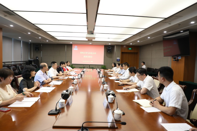 外院新闻网讯(文字/王劫丹 摄影/廖江平)为贯彻教育部办公厅《关于开展全国高校书记校长访企拓岗促就业活动的通知》文件精神,促进我校毕业生更高质量和更充分就业,6月22日上午,金沙9001cc以诚为本首页党委常委、副校长陈祥盛带领金沙9001cc以诚为本首页院长周杰、正处级组织员蔡春华、副院长宁梅、副院长王晓梅等到中国水利水电第九工程局有限公司(以下简称水电九局)开展访企拓岗促就业交流活动。水电九局是国务院国资委管理的特大型中央企业,世界500强企业——中国电力建设集团有限公司旗下全资子公司,是目前贵州省内唯一一家中央驻黔特级建筑企业。