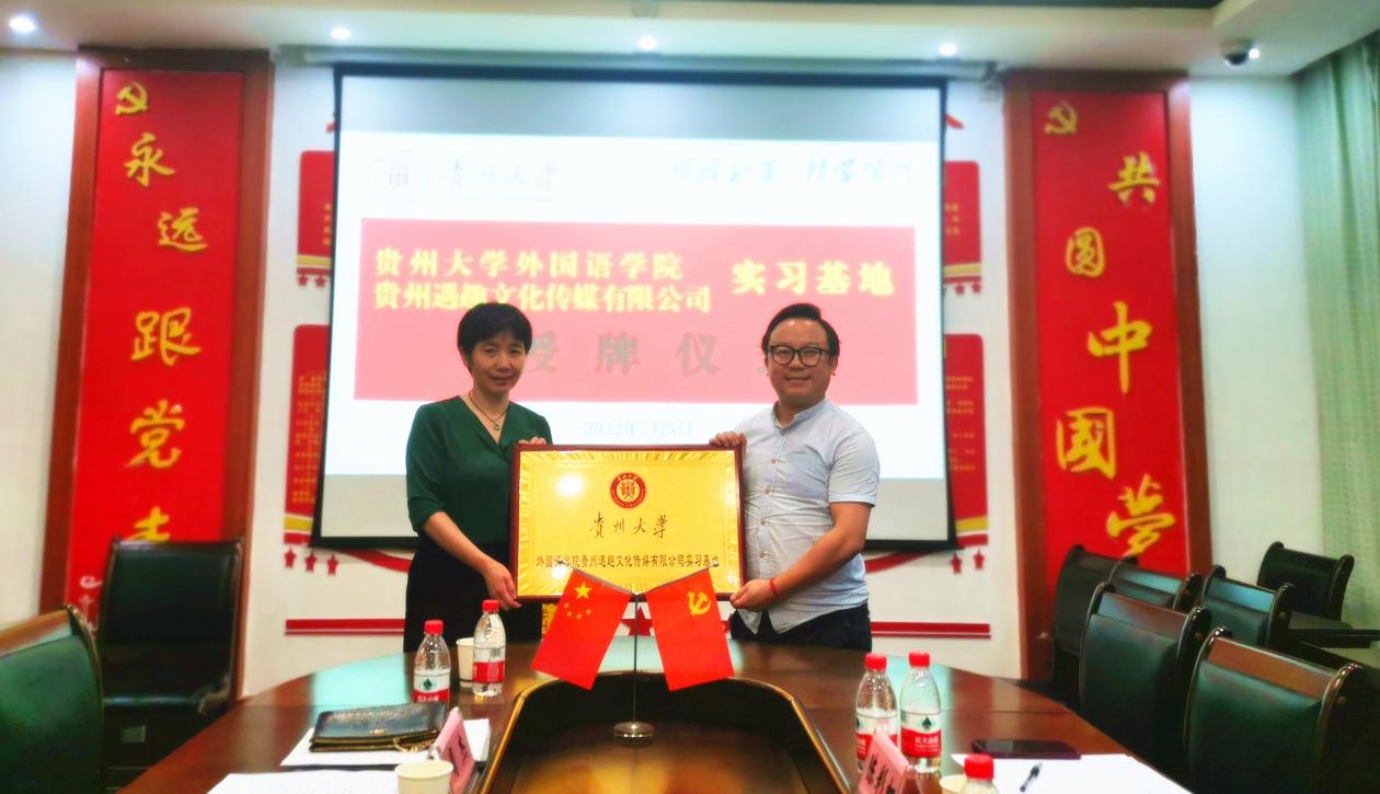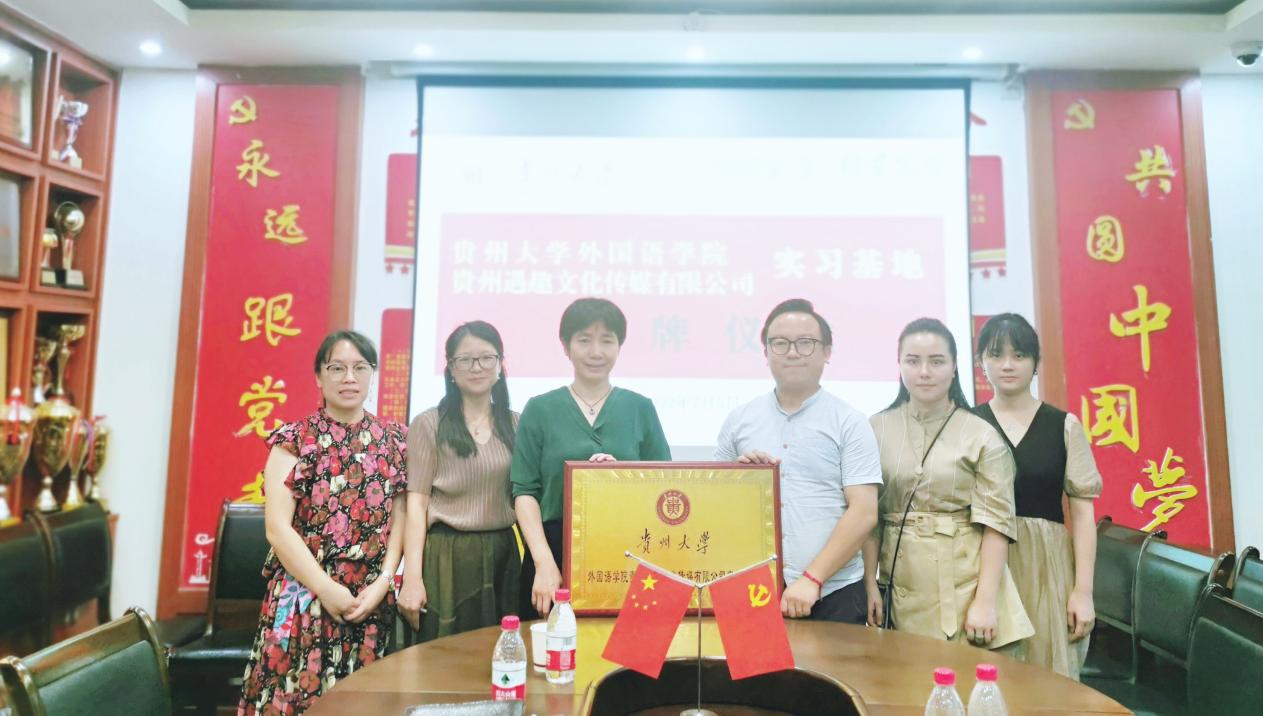 最后,周杰院长为金沙9001cc以诚为本首页贵州遇趣文化传媒有限公司实习基地授牌。