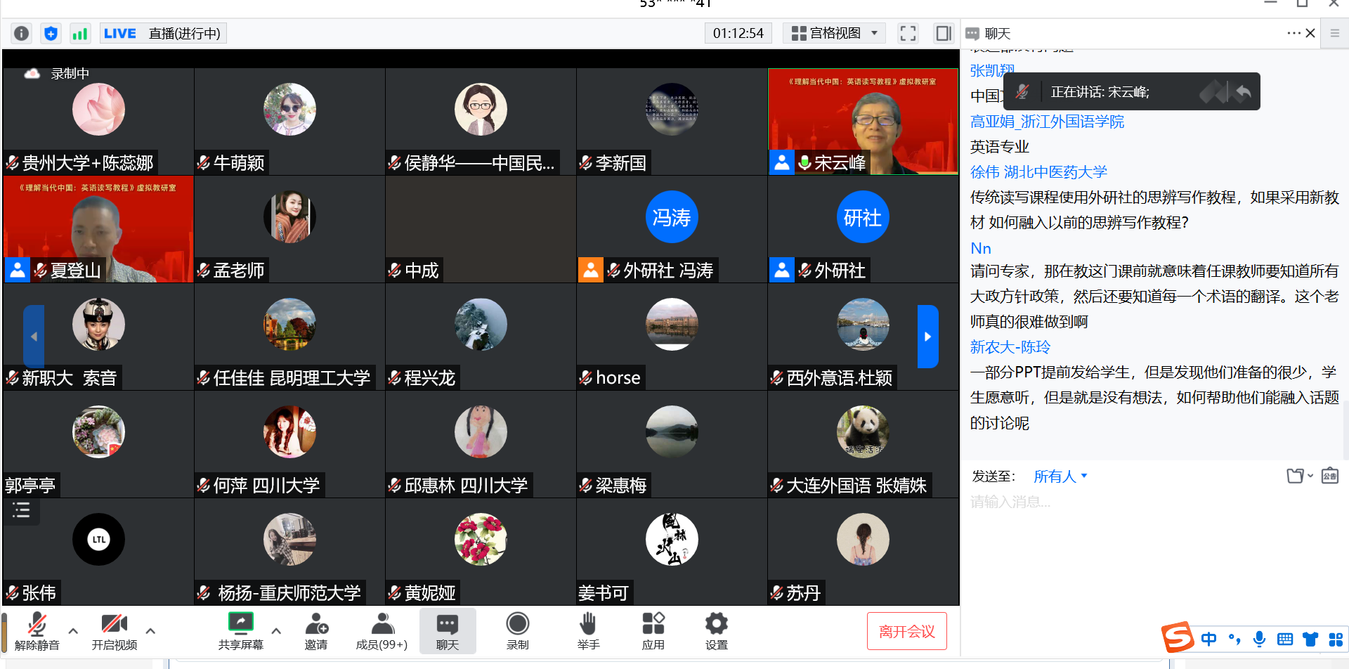 图7:英语系《理解当代中国:英语读写教程》教学团队教师参加虚拟教研室示范课程讲解