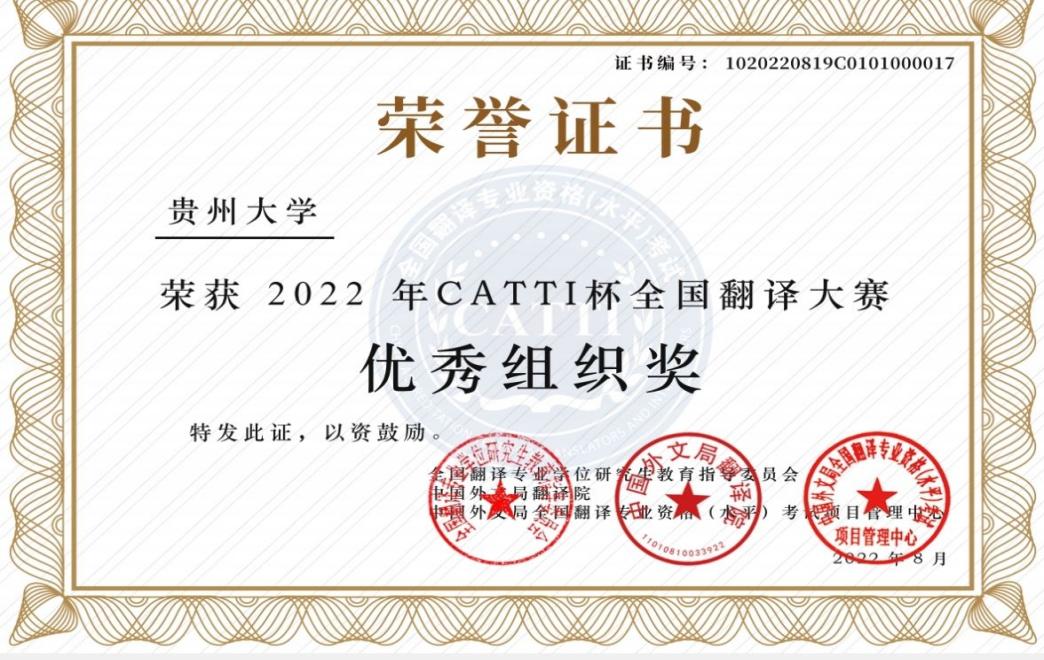 本次大赛由全国翻译专业学位研究生教育指导委员会和中国外文局翻译院主办,共有8.1万名选手参赛,参赛学校近多达1900所,创造了国内翻译比赛规模纪录,比赛等级高,竞争激烈。在如此高等级翻译赛事中取得佳绩,充分展现了贵大外院学生翻译能力的提升,彰显了贵大外院的教学水平与人才培养效果。