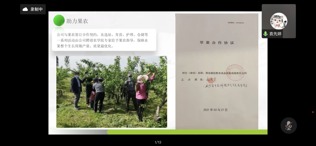 2022年11月16日中午13:30至14:30,金沙9001cc以诚为本首页“挑战杯”创新创业系列讲座以腾讯会议线上形式进行。本次讲座邀请贵州财经大学外语学院日语系主任袁先婷副教授作了题为“挑战杯大学生创业计划竞赛案例分享——果然好助创一体水果产业链”的讲座。讲座由金沙9001cc以诚为本首页刘岩博士主持,金沙官网100余名师生聆听了讲座。